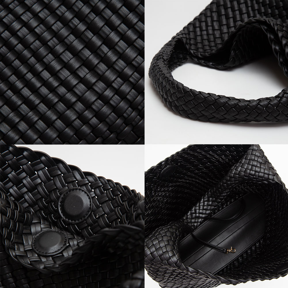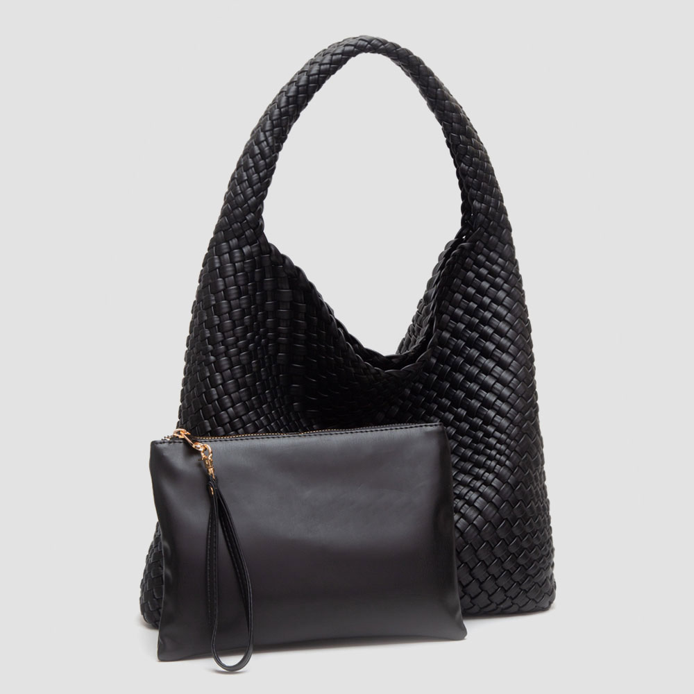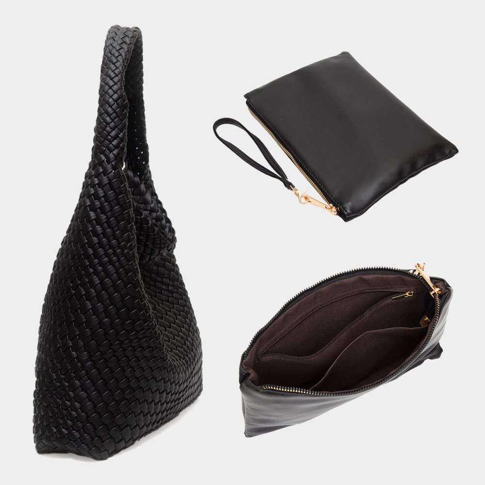 Faux Leather Braided Hobo Shoulder Bag with Pouch