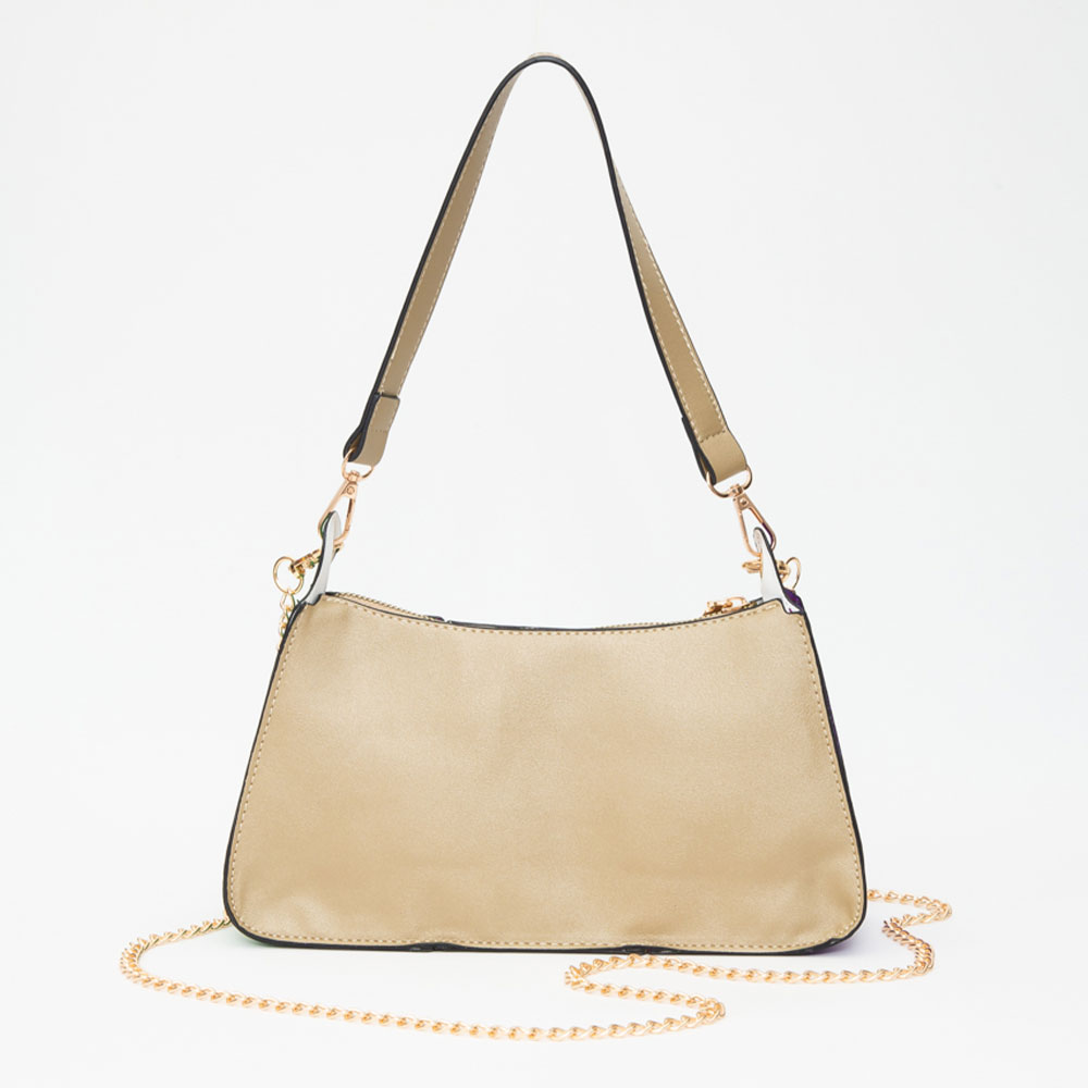 Details • Size : 10.75" X 7" X 2" • Strap 1 Size : 19" L / Detachable • Strap 2 Size : 48" L / Detachable • Stylish tri-color mardi gras shoulder bag featuring bold glitter panels and a sleek zip closure. Accented with a detachable gold-tone chain strap and comfortable shoulder handle, this sparkling design adds festive flair to evening outfits, parties, or special celebrations.