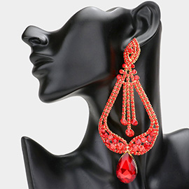 Rhinestone Trim Teardrop Stone Dangle Evening Earrings