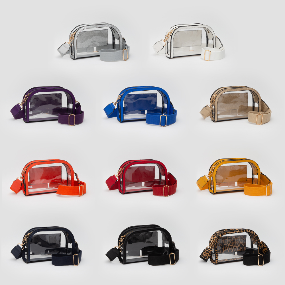• This clear adjustable crossbody bag offers practical style and modern appeal, perfect for stadiums, concerts, and daily use. Designed with a transparent body, wide strap, and secure zip closure, it keeps essentials visible and organized while ensuring hands-free convenience and comfort.
