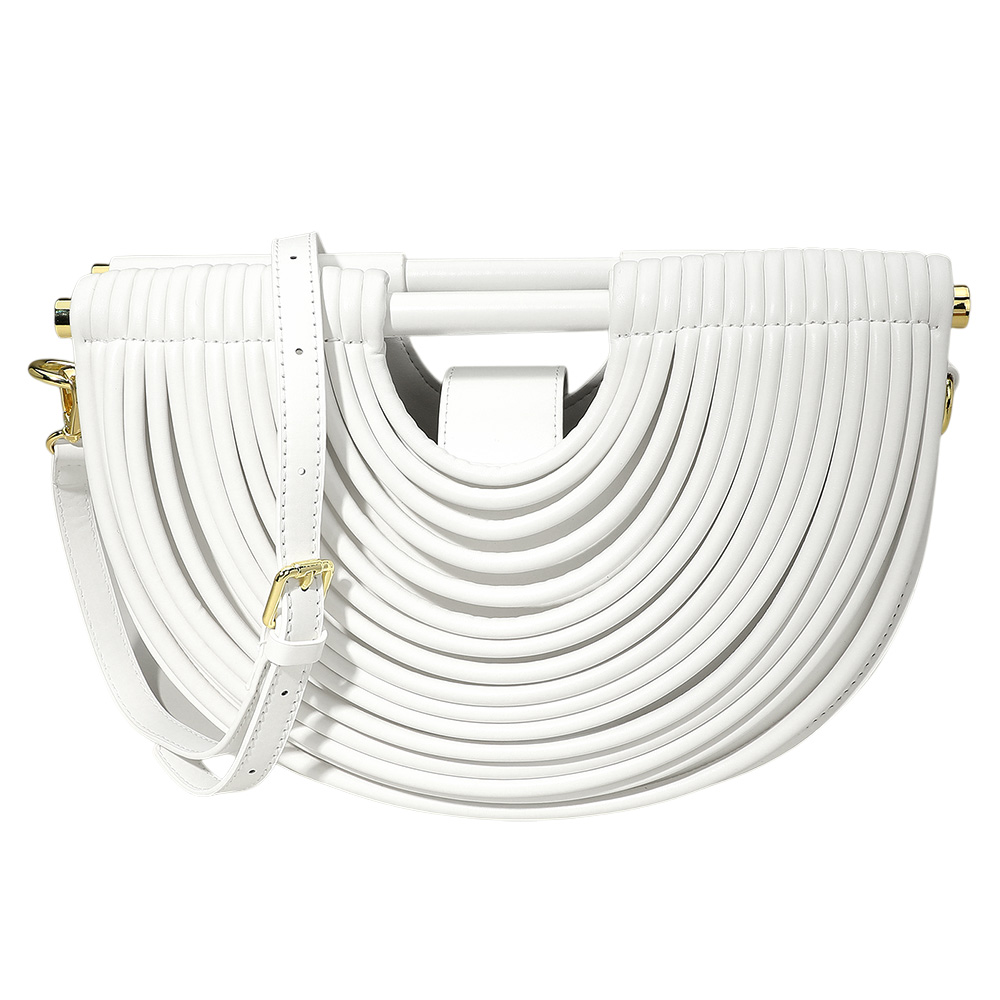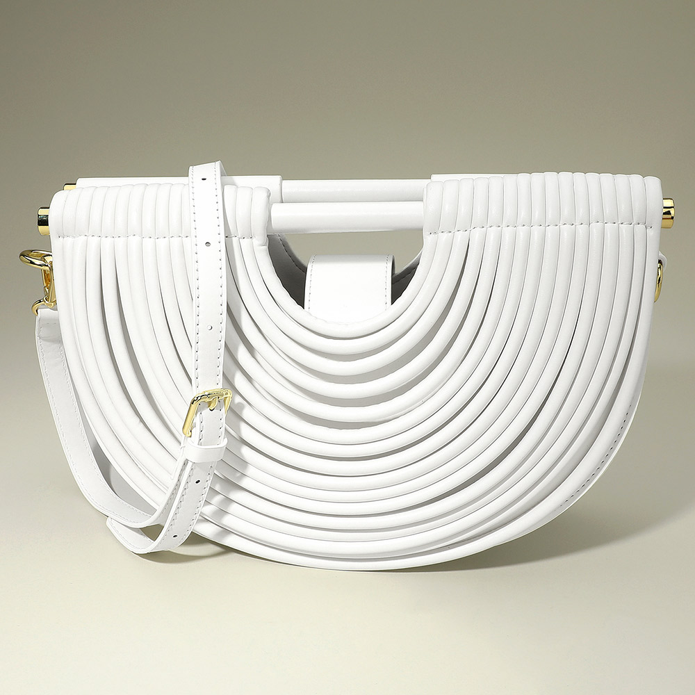 Faux Leather Unique Half Moon Structured Handbag Crossbody Bag