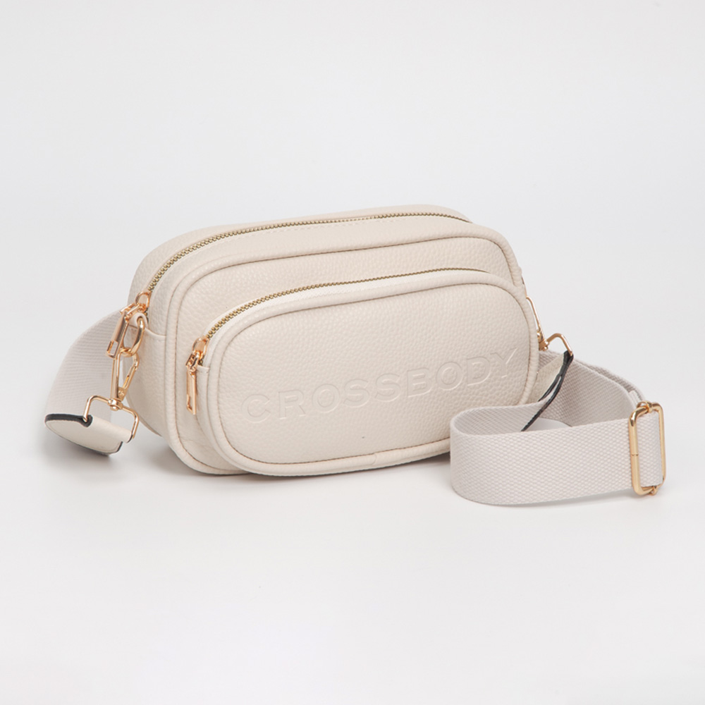 Details • Size : 8" X 5" X 3" • Strap Size : 50" L / Detachable, Adjustable • One Inside Zipper Pocket • Zipper Closure • Stay organized and stylish with this structured crossbody bag featuring multiple zip compartments and an adjustable strap for versatile wear. Compact yet functional, it’s perfect for carrying daily essentials while adding a modern touch to casual or travel outfits.