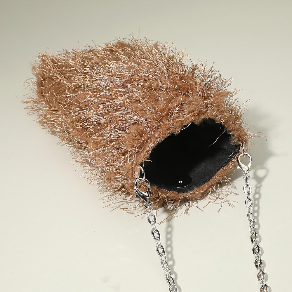 • Carry your phone in style with this faux fur phone bag featuring a soft, fluffy texture and playful design. Comes with a sleek chain strap for easy crossbody wear. Lightweight yet functional, perfect for adding fun and flair to casual outings or festive occasions.