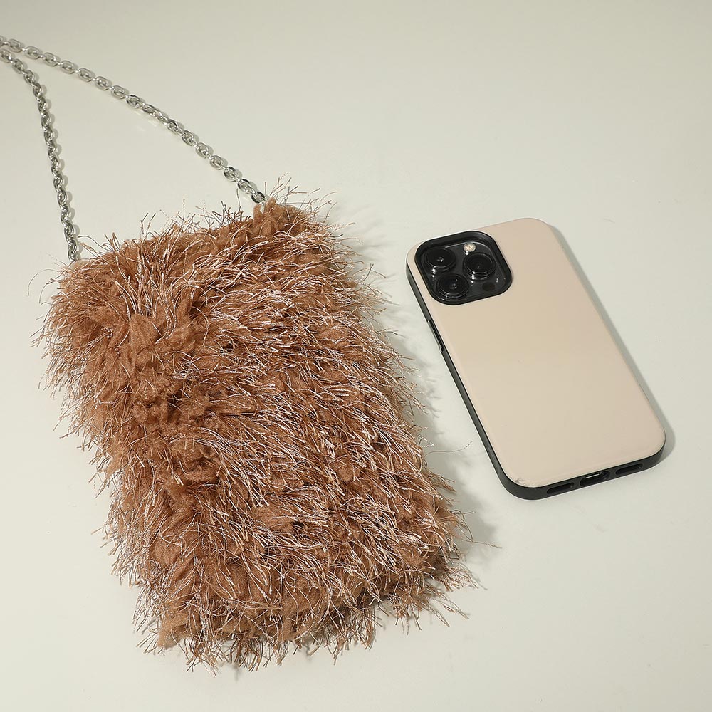 • Carry your phone in style with this faux fur phone bag featuring a soft, fluffy texture and playful design. Comes with a sleek chain strap for easy crossbody wear. Lightweight yet functional, perfect for adding fun and flair to casual outings or festive occasions.