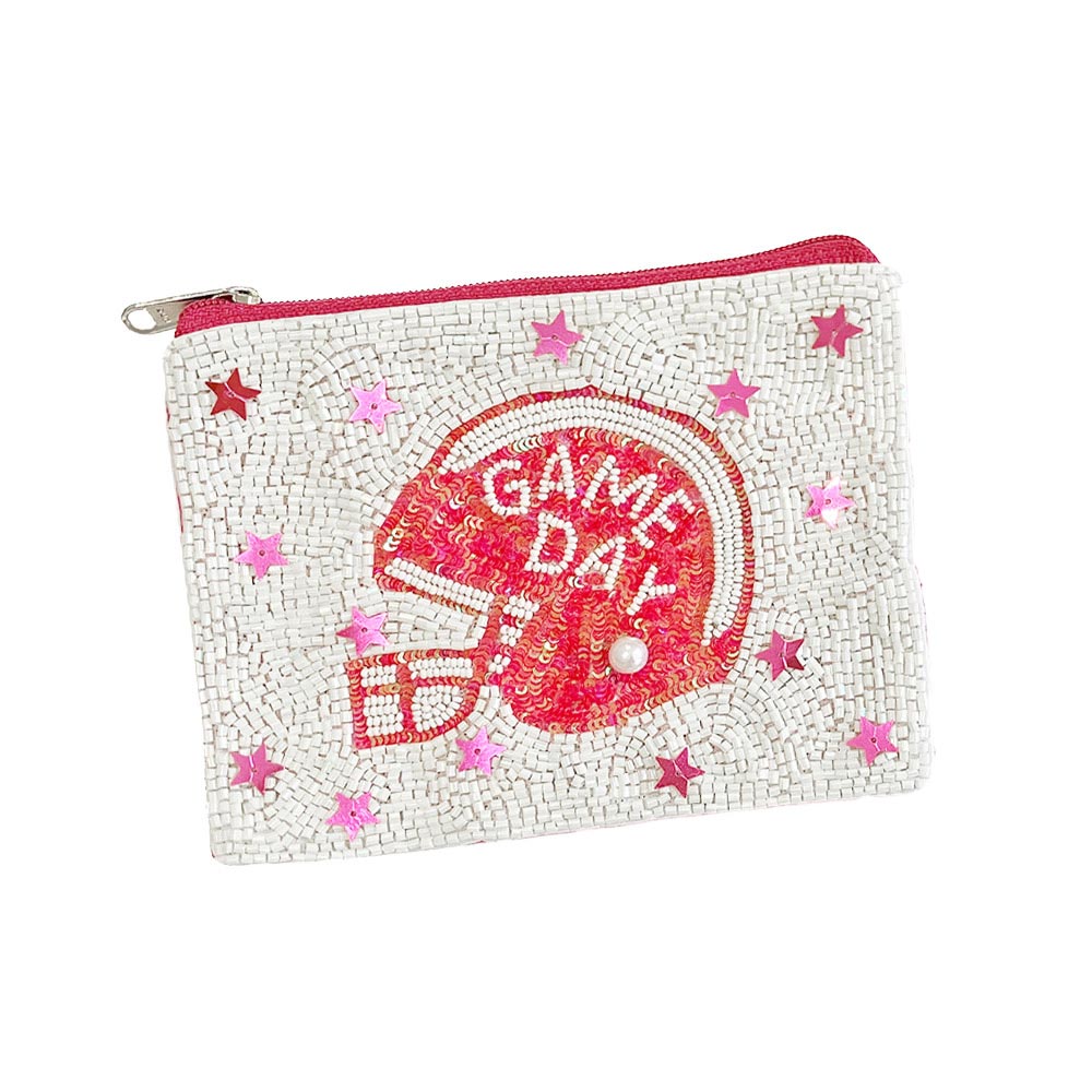 GAME DAY Message Football Helmet Seed Beaded Mini Pouch Bag