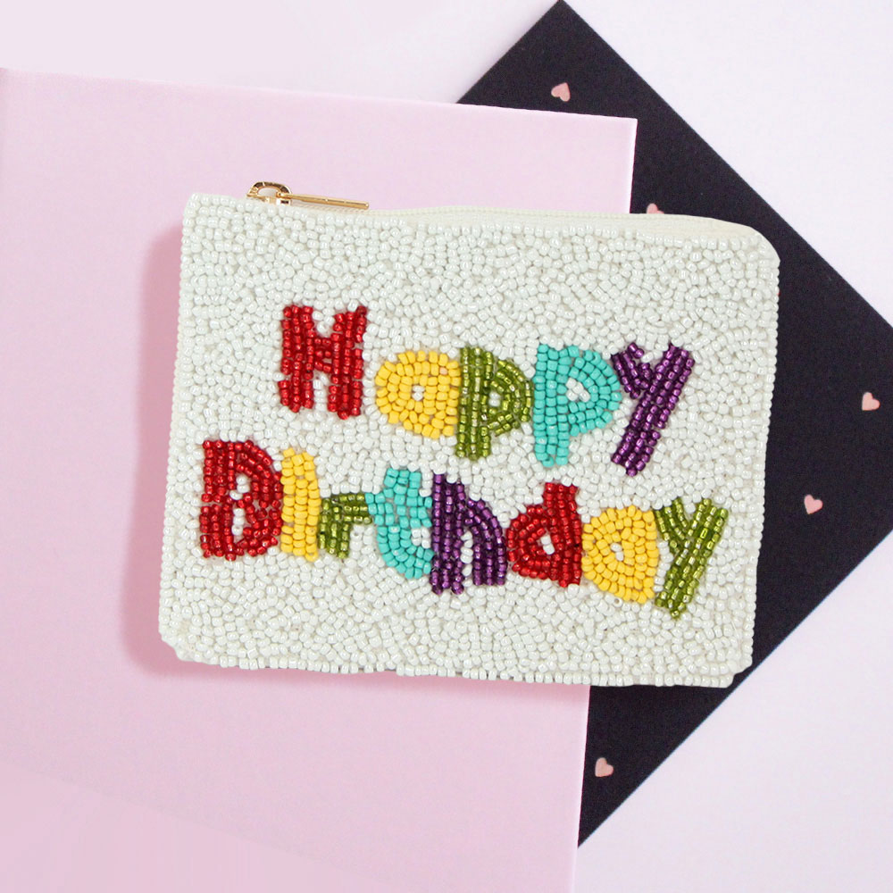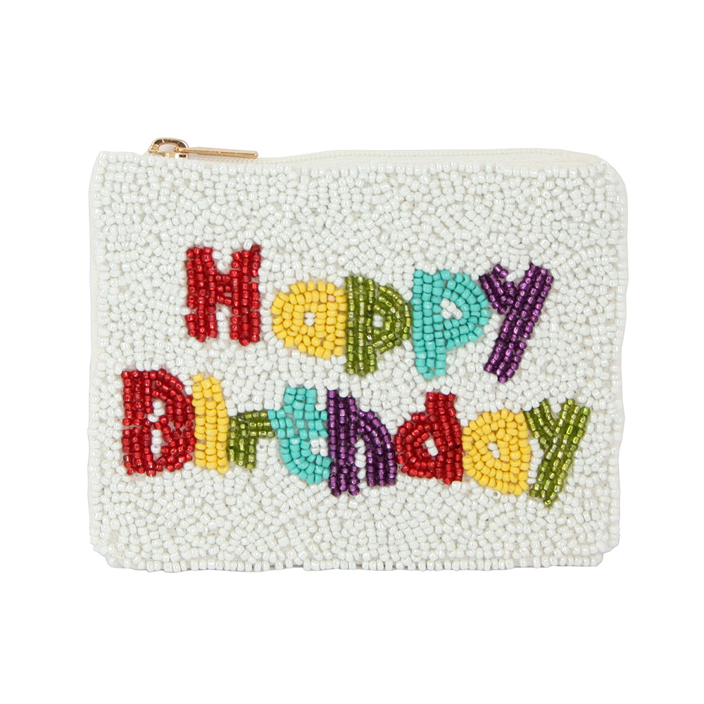 HAPPY BIRTHDAY Message Seed Beaded Mini Pouch Bag