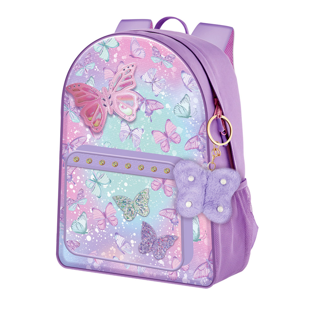 HOT FOCUS - Butterfly Patch Decorative Deluxe Backpack with a Pom Pom Keychain