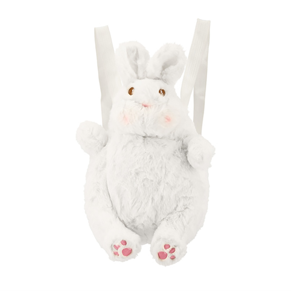 Details • Size : 11" X 13" • Strap Size : Adjustable • Zipper Closure • Adorable plush bunny backpack with soft texture and adjustable straps. Great for carrying small essentials while adding a playful and charming touch. Ideal for kids or animal-themed outfits.