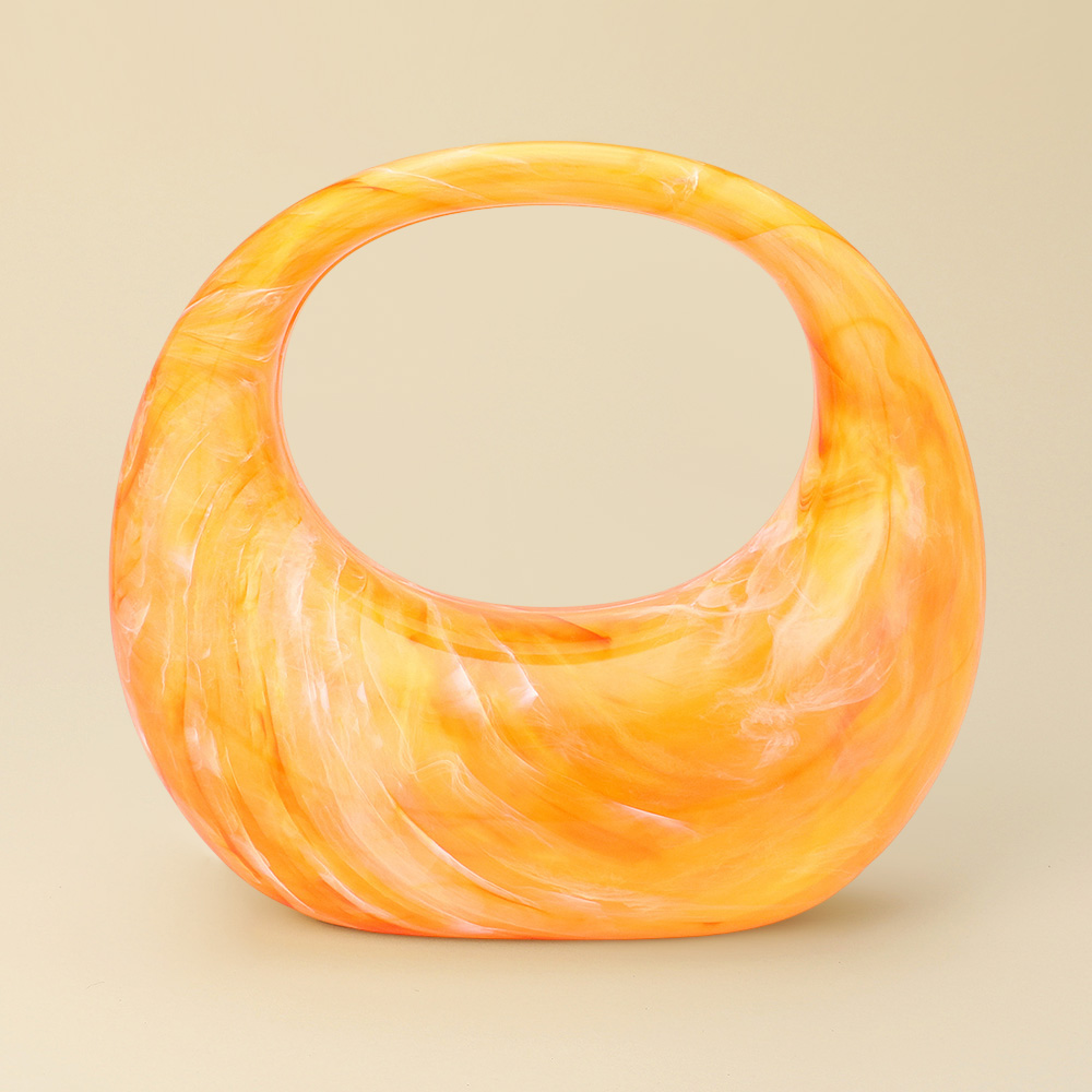 Details • Size : 10.5" X 10" X 2.5" • Top Handle Size : 5.25" L • Strap Size : 46" L / Detachable • Magnetic Closure • Elevate your look with this modern crescent handle tote bag featuring a sleek sculptural shape and smooth glossy finish. A bold statement piece that blends artful design with everyday practicality—perfect for fashion lovers seeking a contemporary and chic accessory.