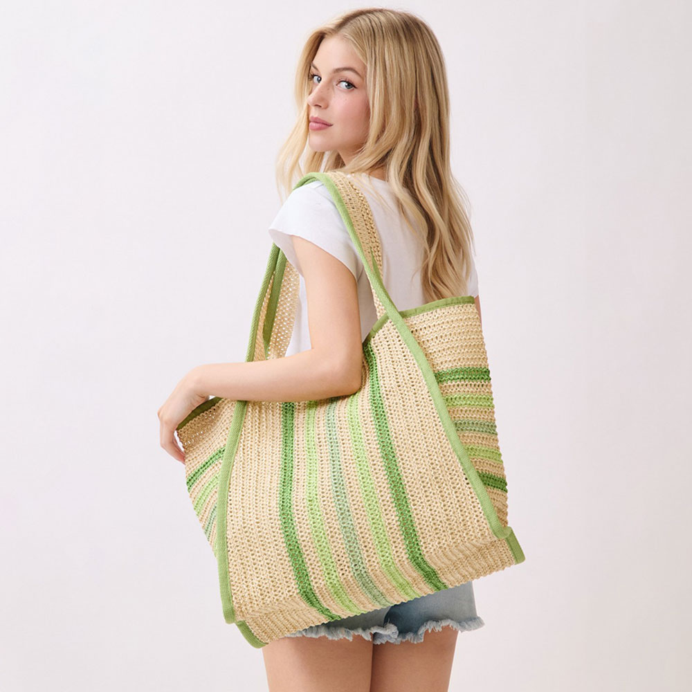 • Spacious oversized tote bag designed for everyday carry, travel, shopping, and beach use. Features a structured silhouette with vertical stripe detailing, comfortable shoulder straps, and an open interior for easy access. A versatile statement bag ideal for boutique and lifestyle collections.