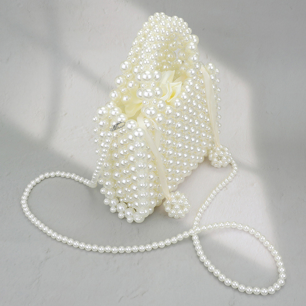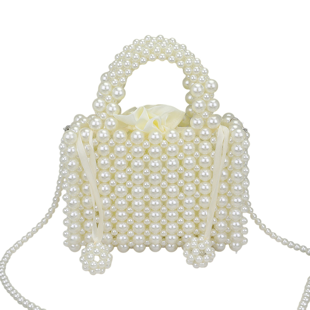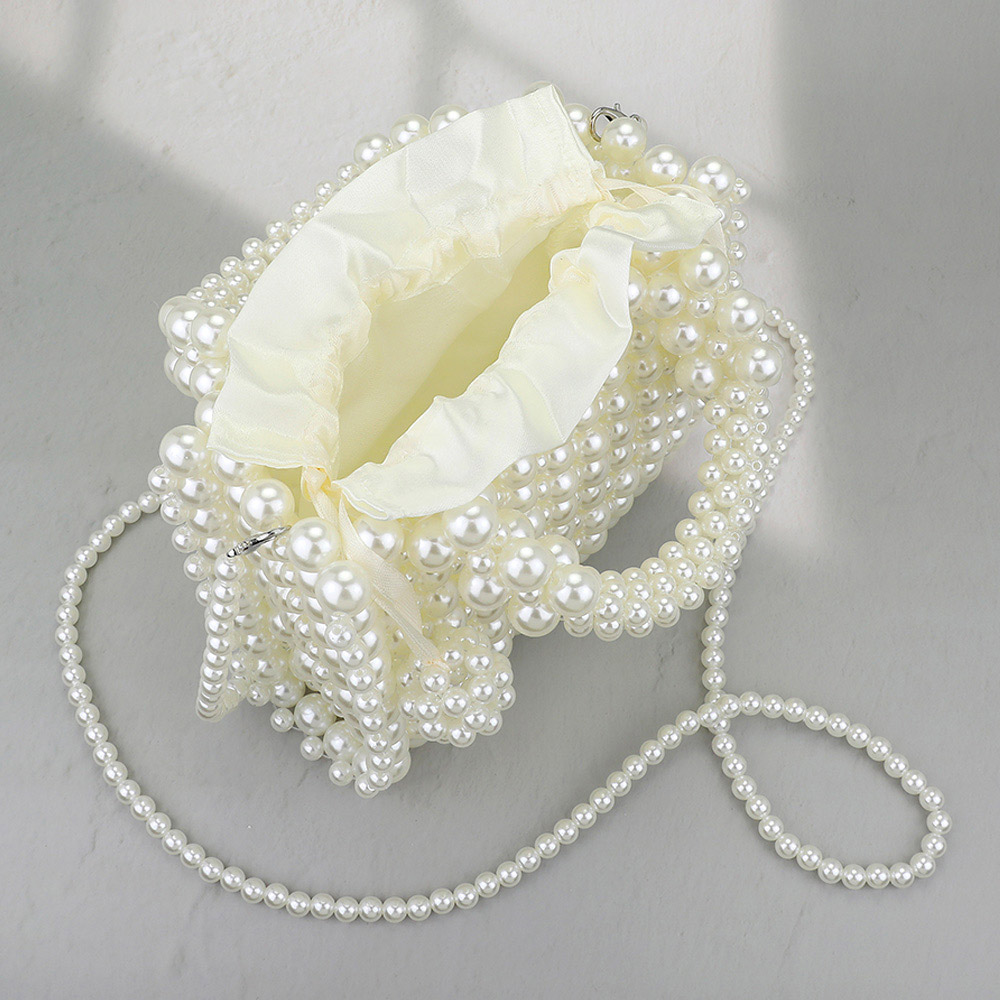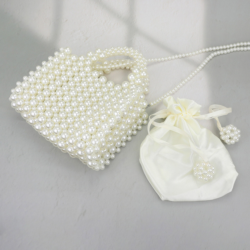 • Chic mini handbag featuring a structured pearl beaded exterior, dual handles, and a soft drawstring pouch. Ideal for weddings, parties, or formal events, it adds a refined and unique flair to any ensemble.