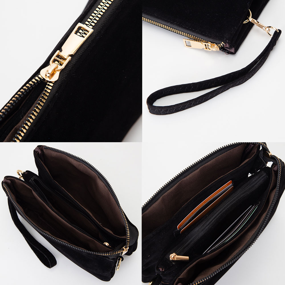 • Elevate your everyday look with this minimalist faux suede crossbody clutch. Featuring a smooth zip closure, detachable wristlet strap, and adjustable shoulder strap, this compact bag offers versatile wear as a clutch, shoulder bag, or crossbody. Perfect for daily errands, travel, or casual outings.