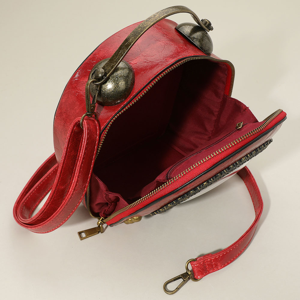 Details • Size : 8" X 7.75" X 4" • Top Handle Size : 1.5" L • Strap Size : 52: L / Adjustable, Detachable • One Inside Slip Pocket • One Inside Zipper Pocket • Zipper Closure • Unique crossbody bag with a vintage-inspired clock face design, antique gold-tone details, and bold accents. A statement accessory perfect for themed outfits, cosplay, or everyday standout style.