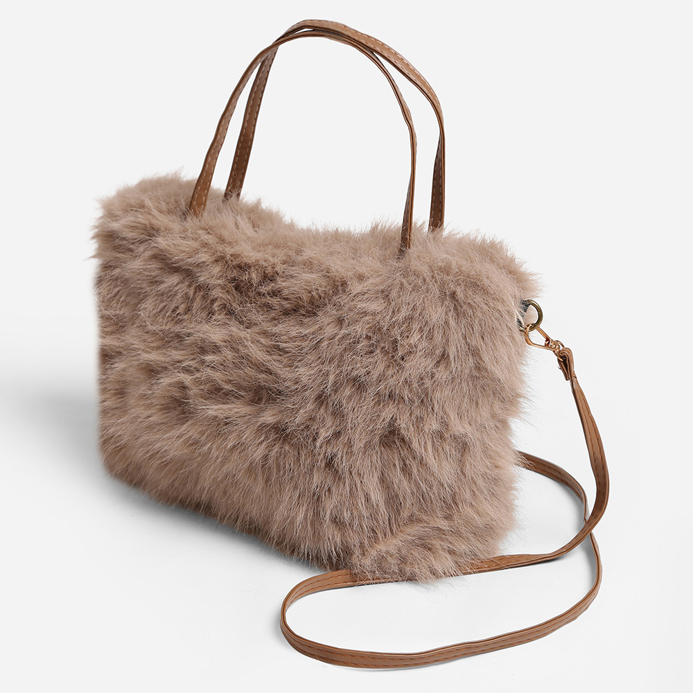 Solid Faux Fur Mini Handbag Crossbody Bag