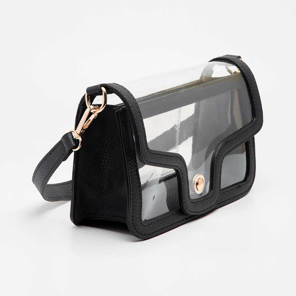 Details • Bag Size : 8.7" X 2.75" X 5.1" • Strap Size : 17.5" L, Detachable • One Inside Slip Pocket • Magnetic Closure • Stay stylish and compliant with this elegant clear crossbody purse, designed with a structured envelope flap and secure snap closure. Ideal for concerts, sporting events, and stadiums, it blends functionality and fashion for on-the-go convenience and clarity.