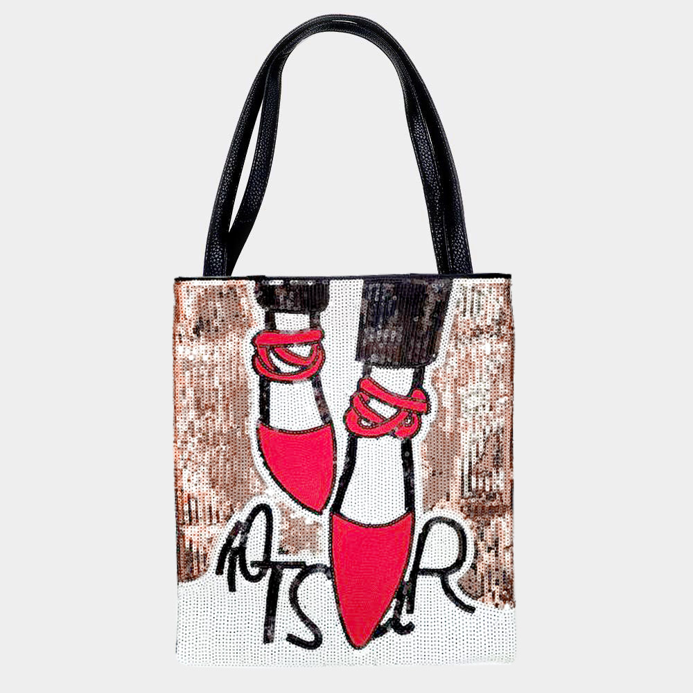 Stiletto Heel Sequin Faux Leather Shoulder Bag