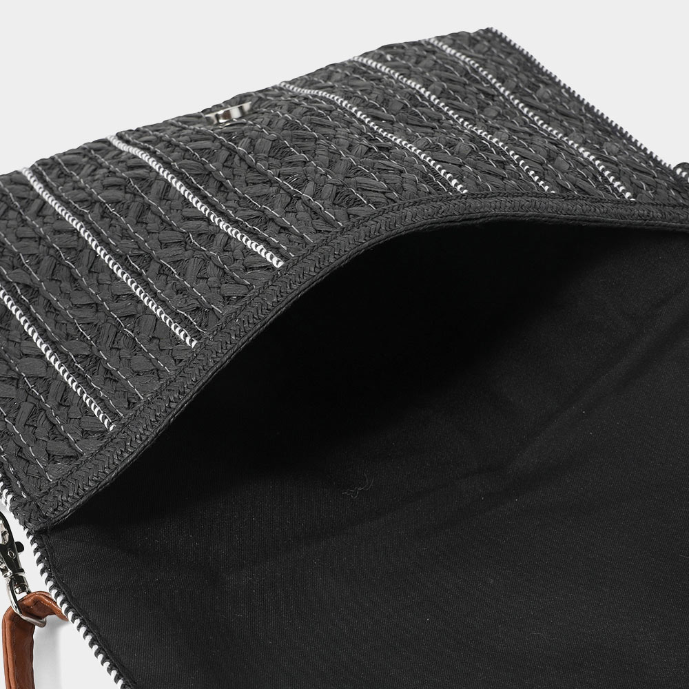 Stitch Detailed Straw Clutch Bag / Crossbody Bag