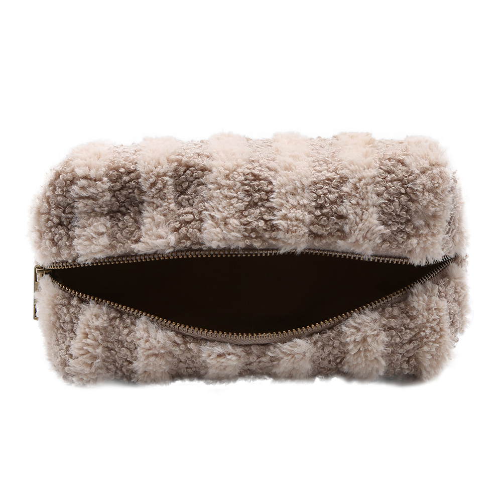 • Keep essentials organized with this soft plush striped zipper pouch. Featuring a cozy textured design and secure zip closure, it’s ideal for cosmetics, stationery, or travel accessories. A stylish and practical pouch for everyday use or gifting.