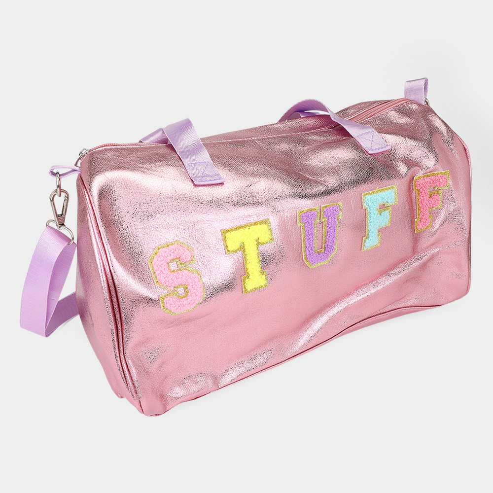 STUFF Message Metallic Top Handle Duffle Bag / Crossbody Bag