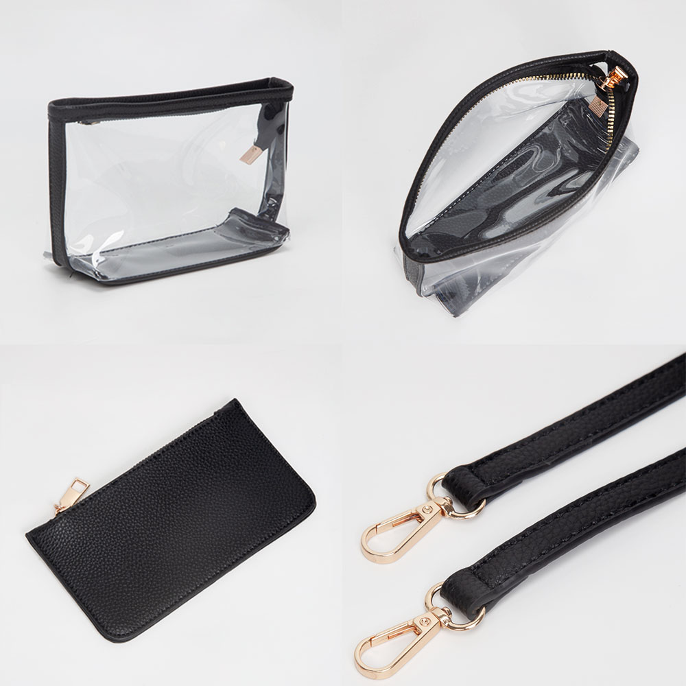 • Stylish clear 3-piece bag set featuring a structured top-handle tote, detachable crossbody insert and matching zip pouch. Ideal for stadium events and everyday organization, offering convenient storage, lightweight design and versatile carrying options for on-the-go use.