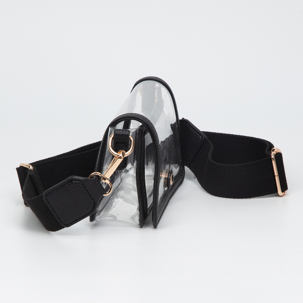 • Stay stylish and compliant with this clear stadium-approved crossbody bag, featuring black trim, secure snap closure, and an adjustable shoulder strap for comfort. Perfect for concerts, sporting events, festivals, and everyday use, offering convenience while meeting event regulations with ease.