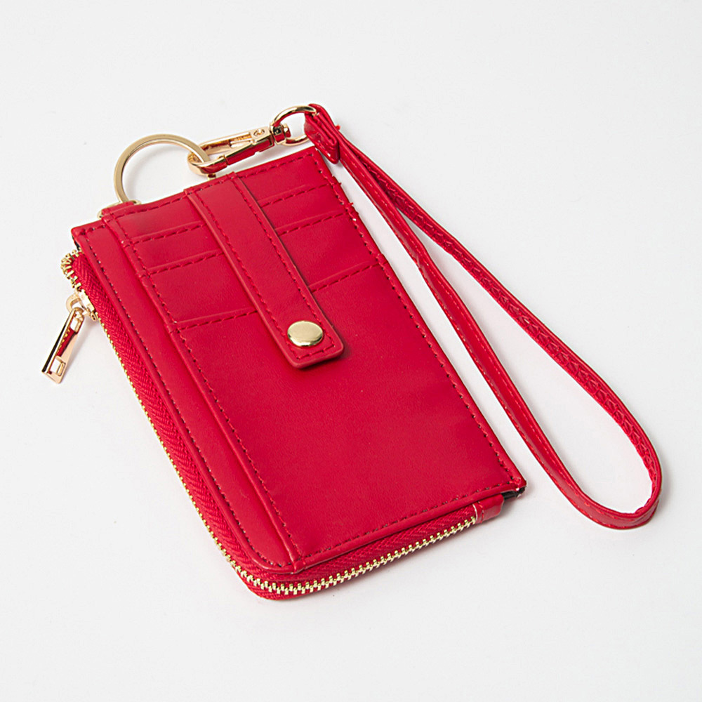Faux Leather Basket Weave Flat Card Holder Wallet with Wristlet