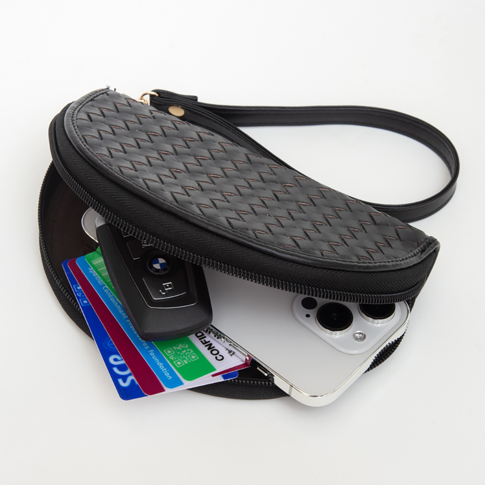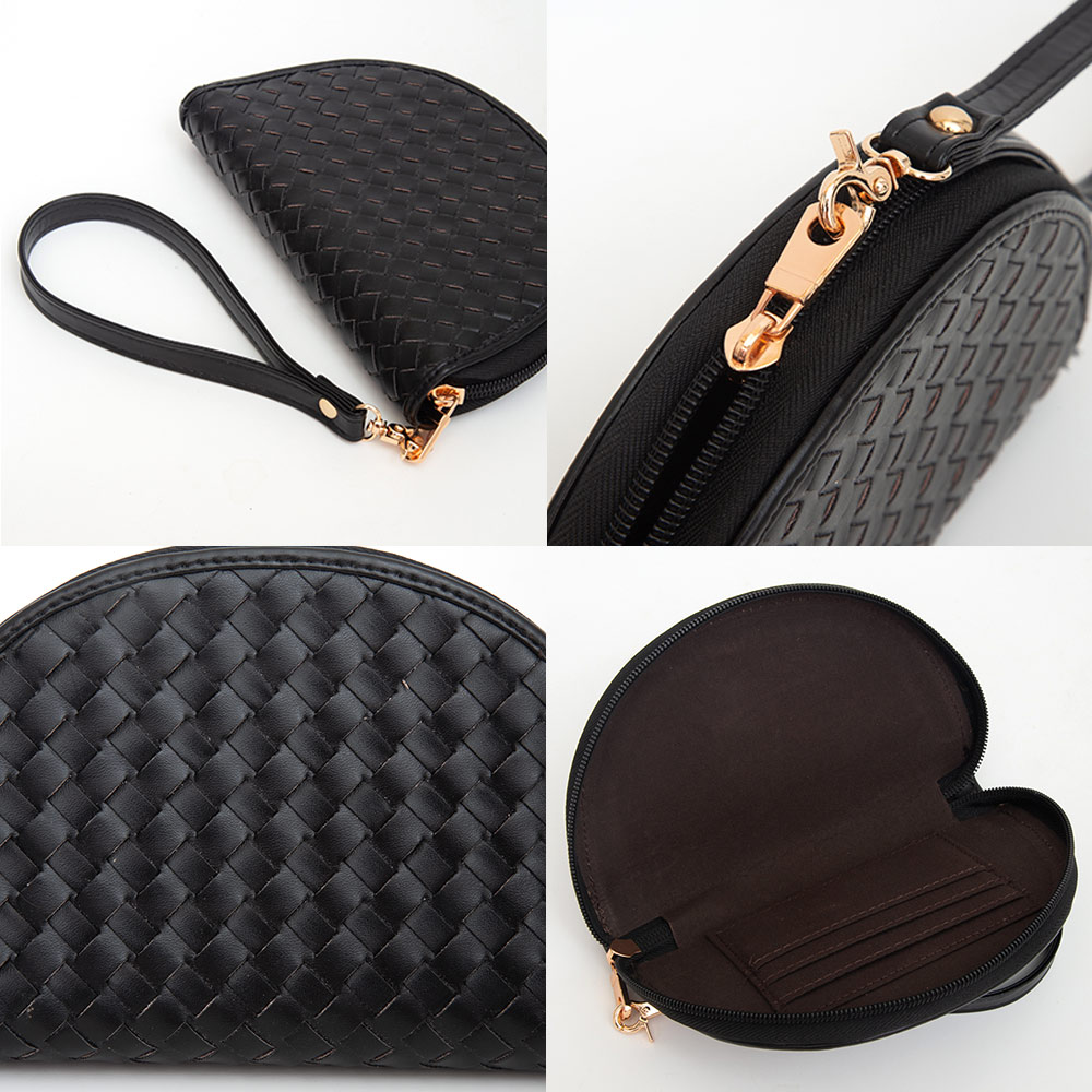 Faux Leather Basket Weave Half Moon Shaped Wristlet Wallet