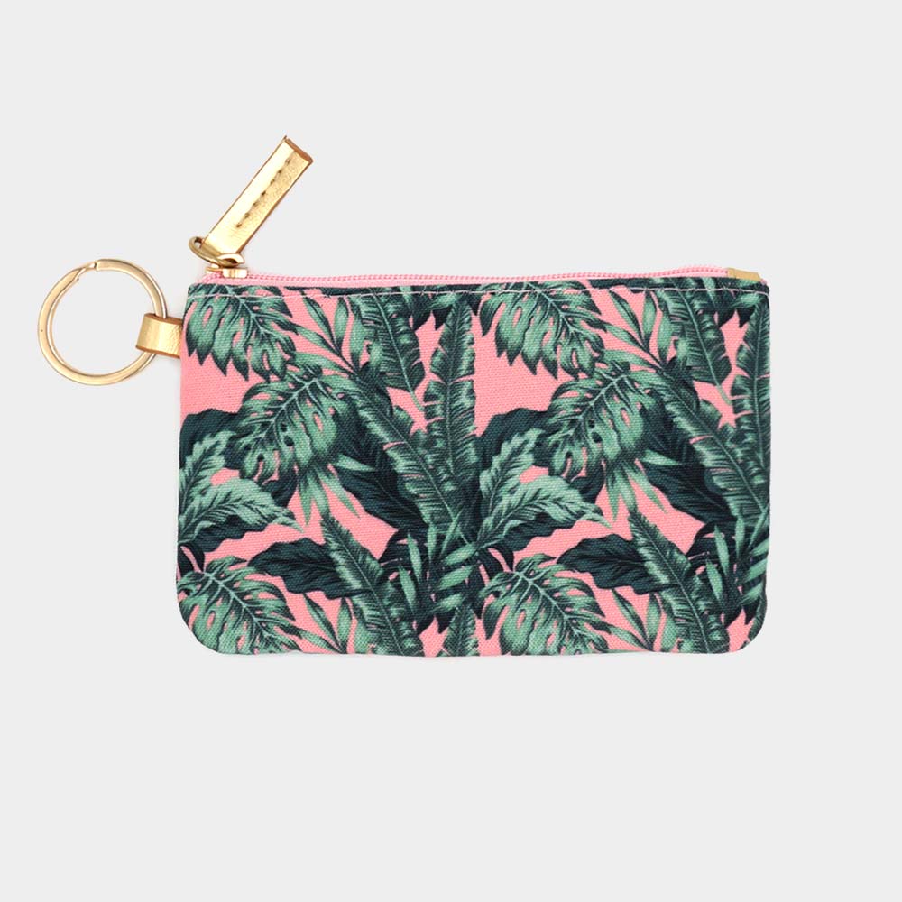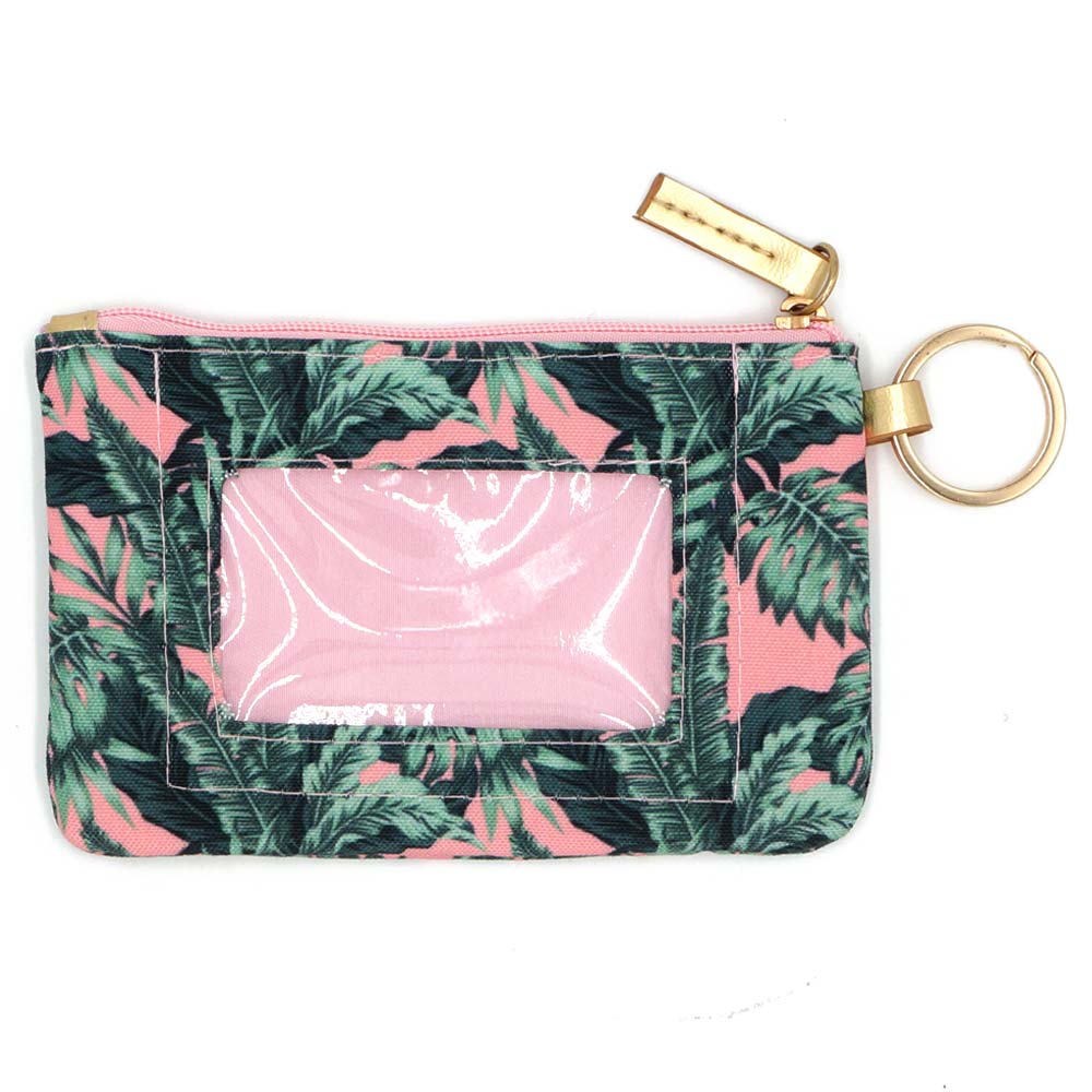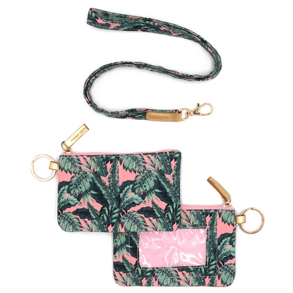Tropical Leaf Patterned ID Wallet Detachable Lanyard