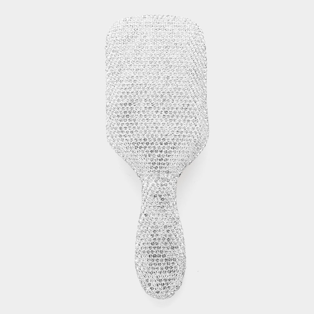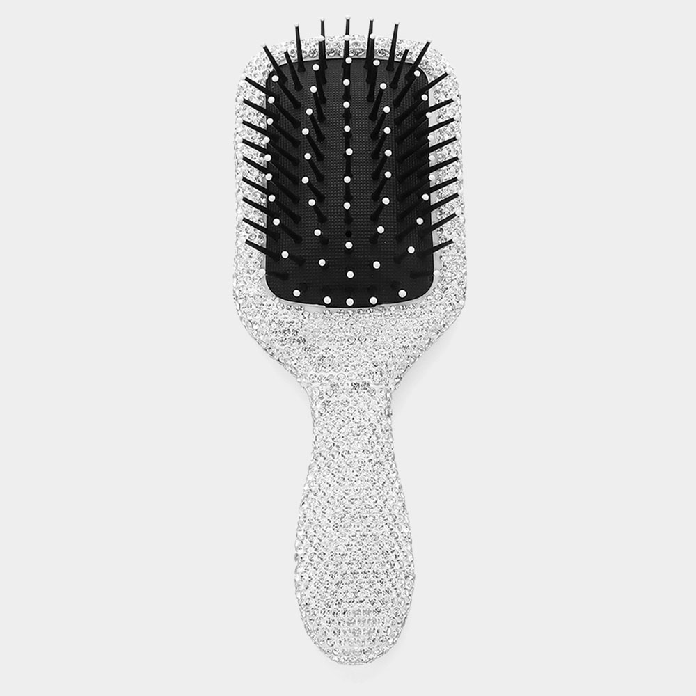 • Elegant paddle hair brush adorned with rhinestones for a stylish touch. Ideal for detangling and smoothing hair with ease, featuring ball-tip bristles for gentle grooming.