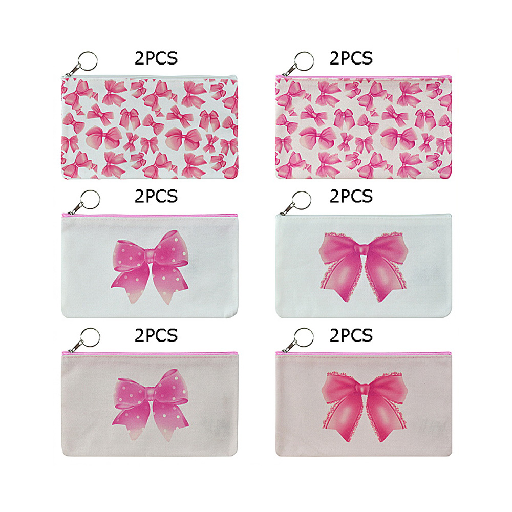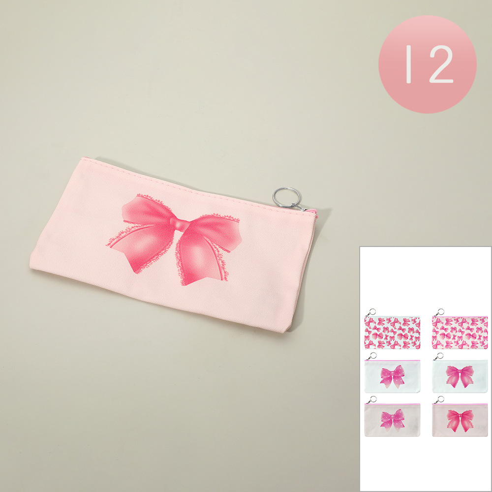 Details • Size : 8.6" X 5" • Zipper Closure • Set of 12 zipper pouches featuring charming bow print designs. Perfect as party favors, gift packaging, or everyday storage for small items like stationery, cosmetics, or accessories. Lightweight and reusable, these pouches combine practicality with a cute decorative touch.
