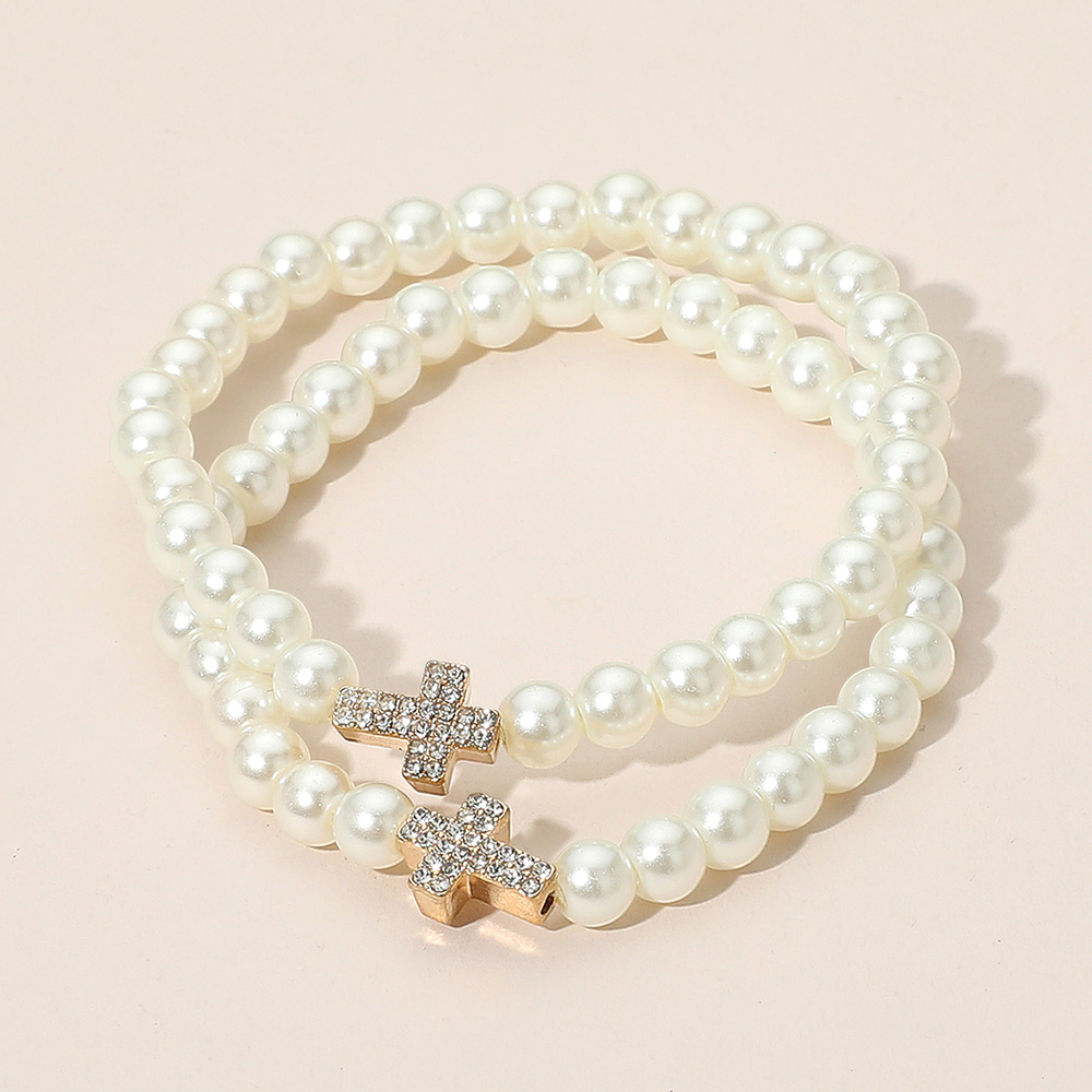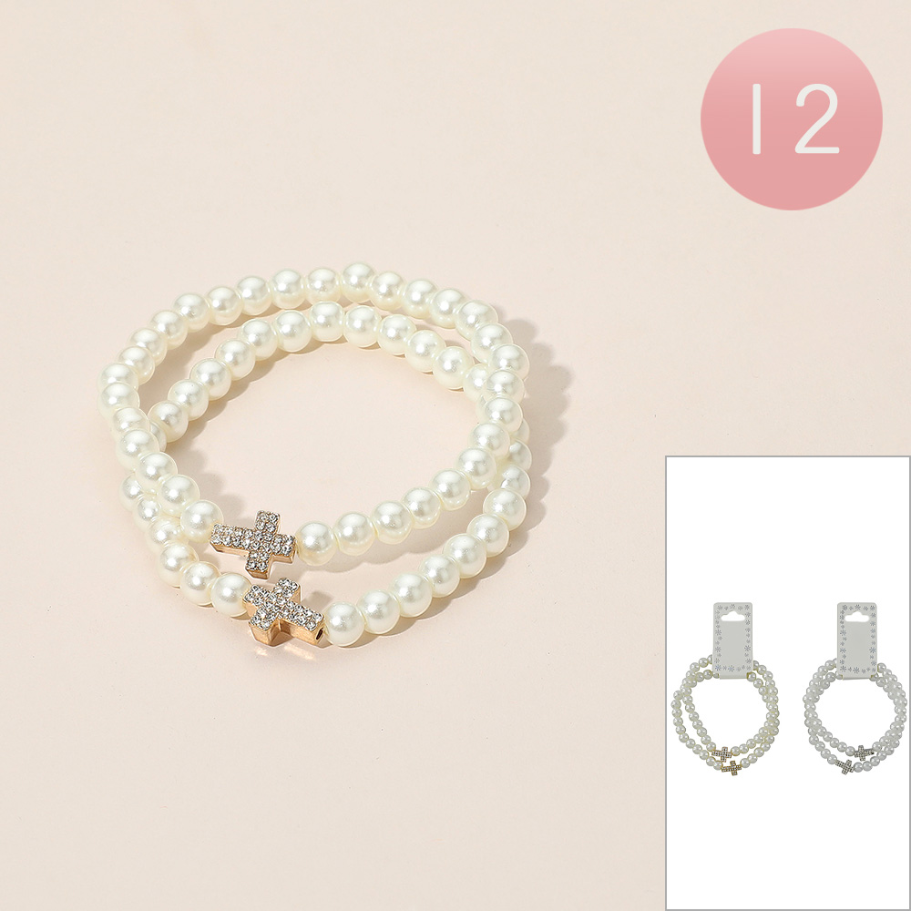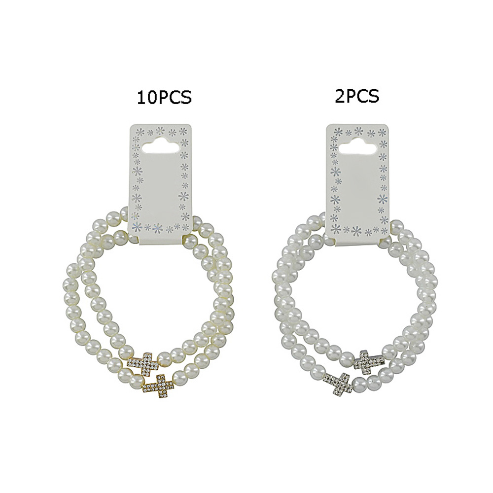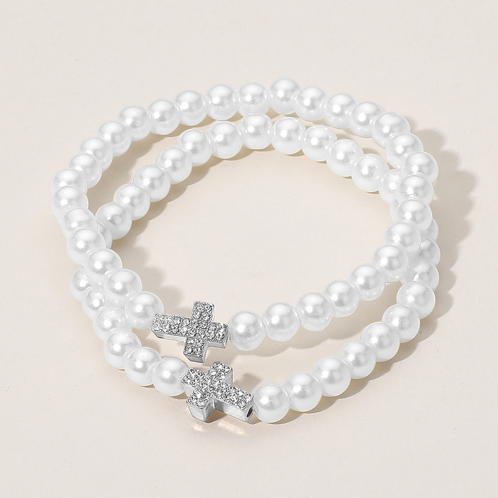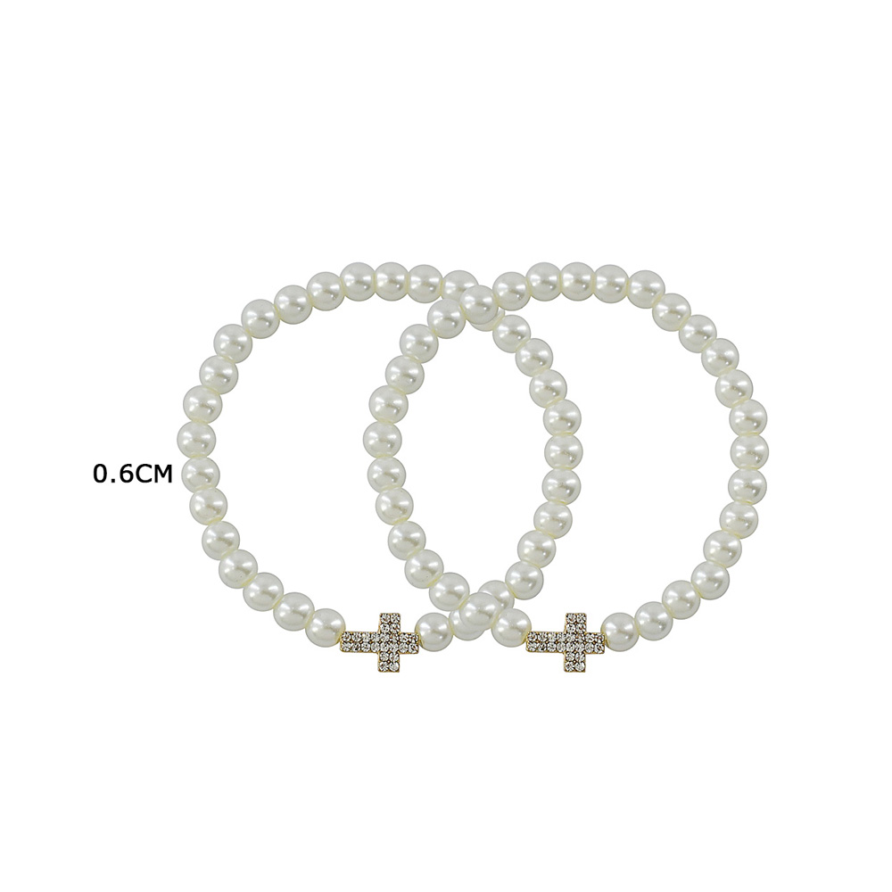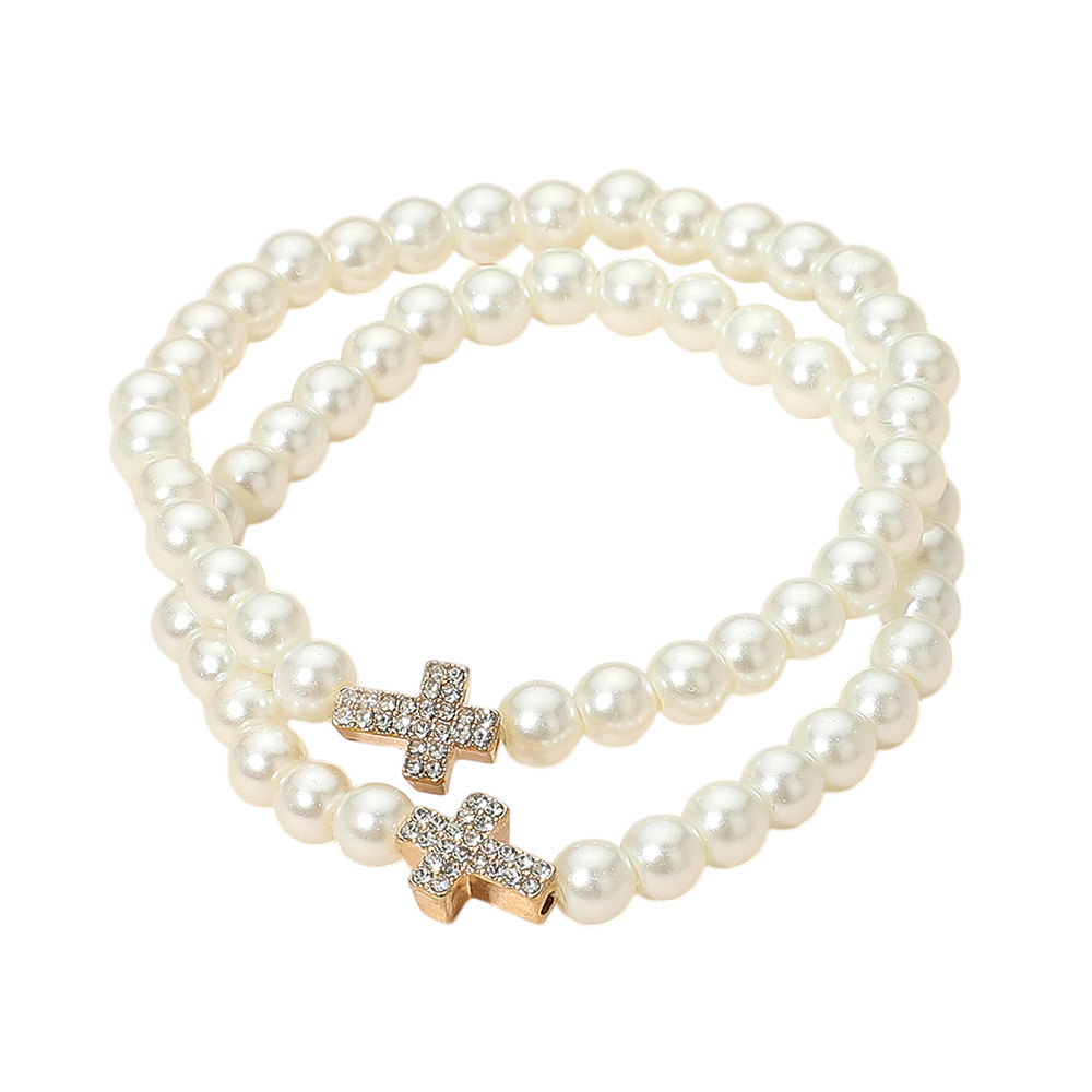 Details • Size : 0.75" H • Stretchable • Elegant and timeless, this set of 2 pearl beaded stretch bracelets features sparkling crystal cross charms for a touch of faith and style. Perfect for layering or wearing alone, these versatile bracelets make a meaningful accessory for daily wear or thoughtful gifting. • Lead and Nickel Compliant