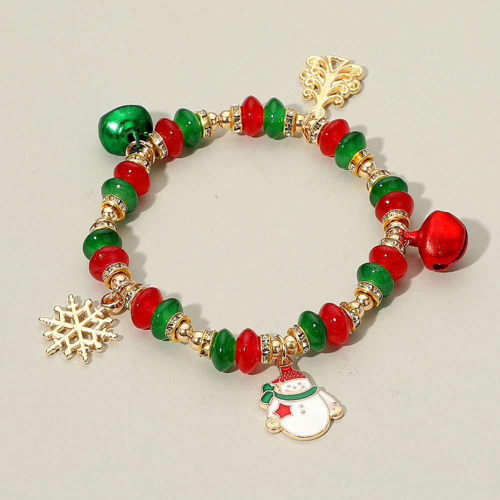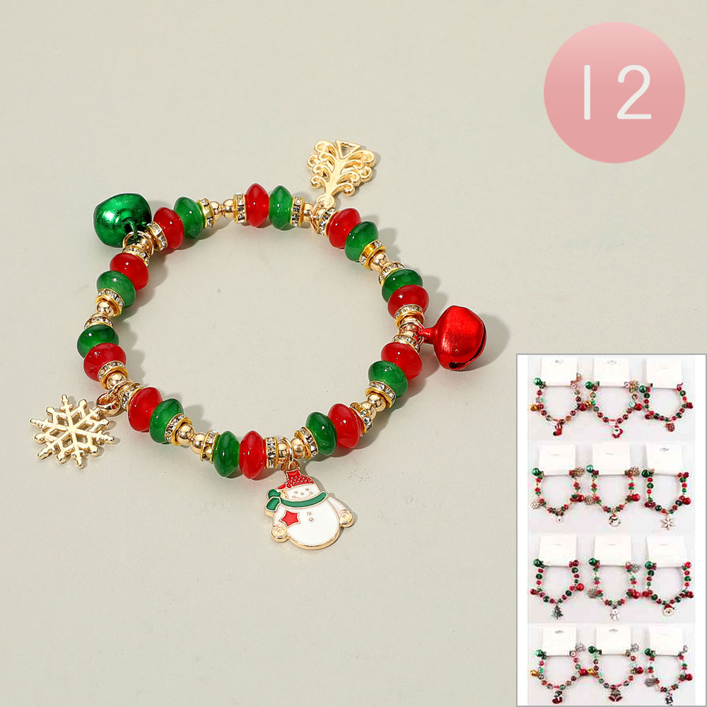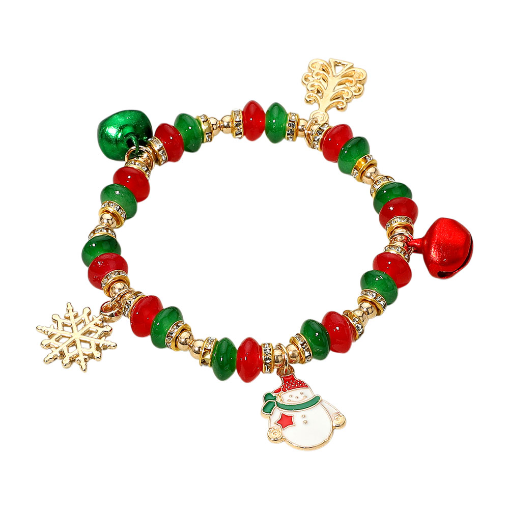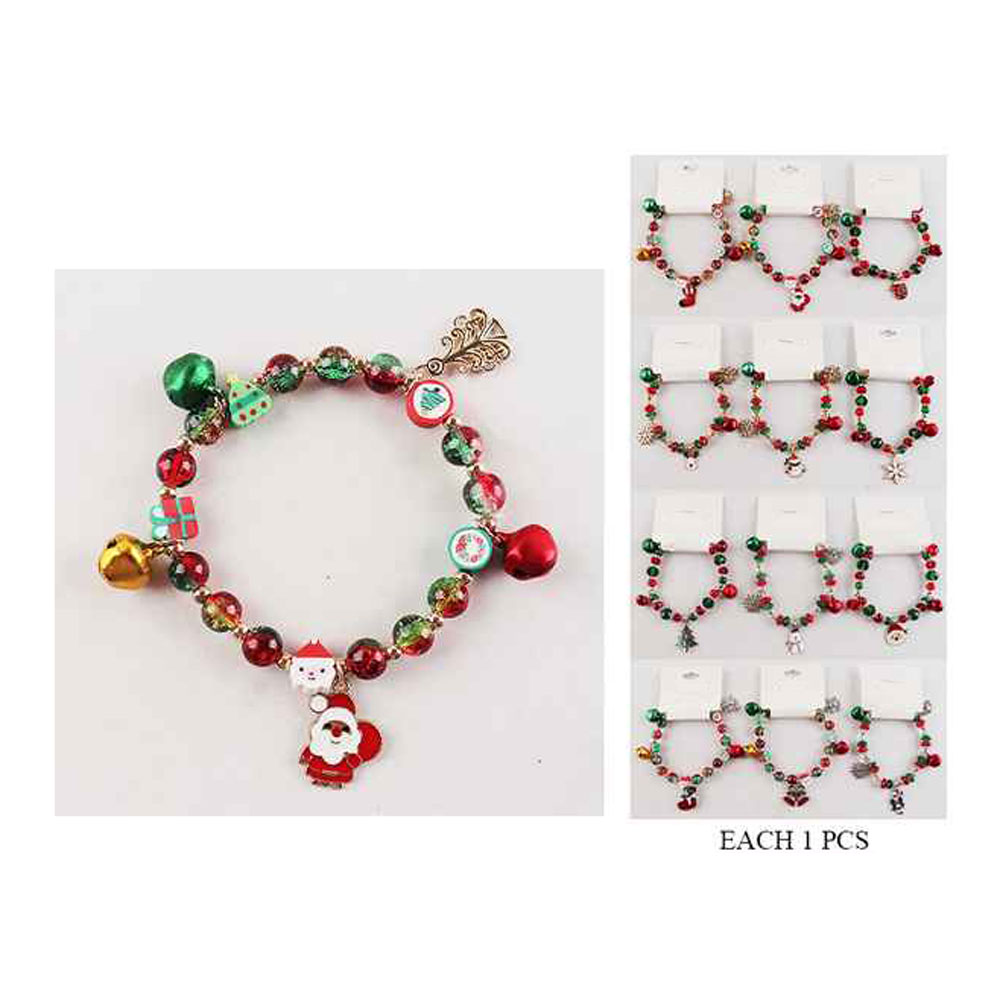 Details • Size : 0.4" H • Charm Size : Approximately 0.75" L • Stretchable • Celebrate the holidays with this festive beaded stretch bracelet featuring colorful beads and playful charms including a snowman, snowflake, tree, and jingling bells. A cheerful and comfortable accessory, perfect for holiday outfits or gifting seasonal joy. • Lead and Nickel Compliant