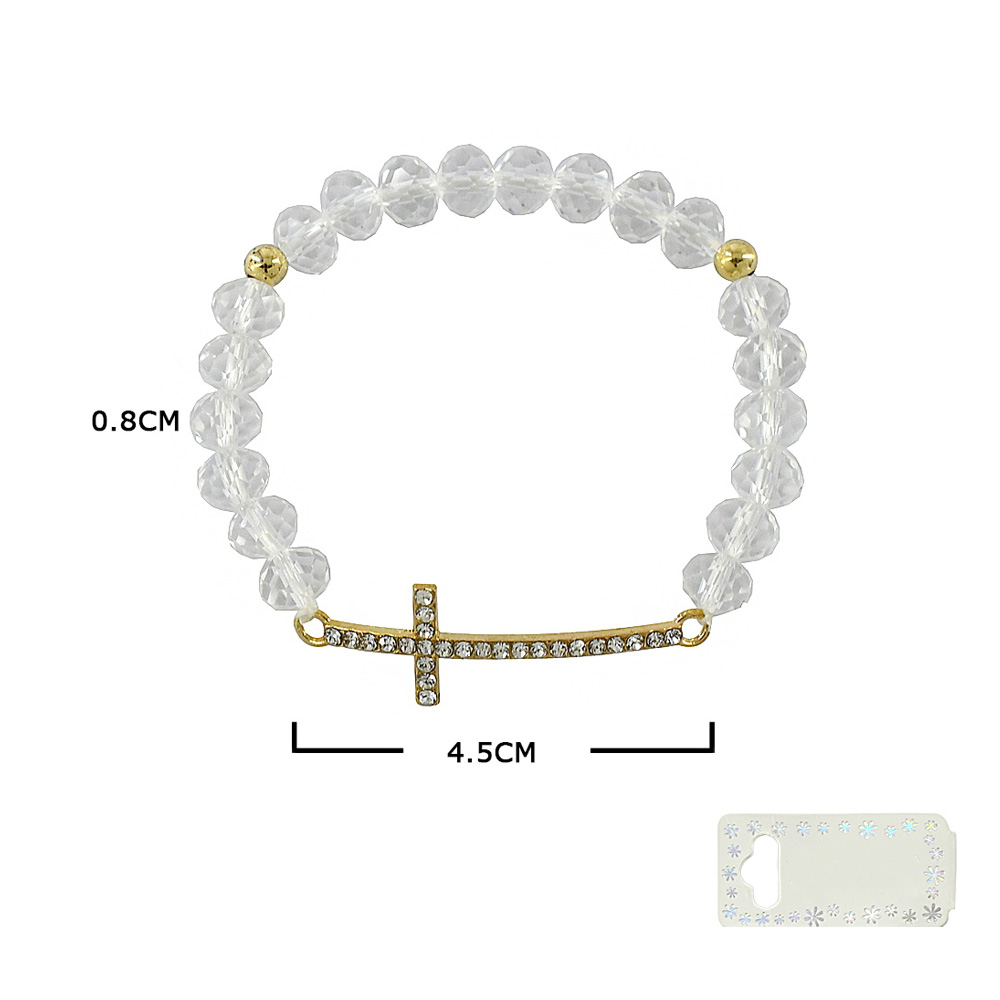 Details • Size : 0.5" H • Stretchable • Elevate your style with this beaded stretch bracelet featuring a sparkling crystal cross charm. Designed for comfort and elegance, this meaningful accessory blends faith and fashion, making it perfect for daily wear, special occasions, or thoughtful gifting. • Lead and Nickel Compliant