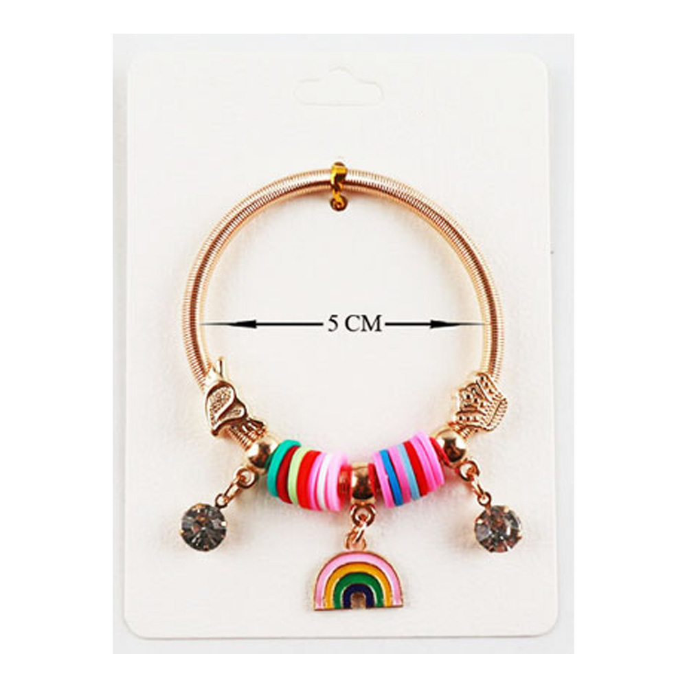 12PCS - Kids Enamel Rainbow Stone Cluster Charm Pointed Heishi Beaded Stretch Bracelets