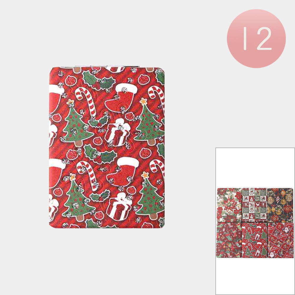 Details • Size : 2.5" X 3.3" • 2 In 1 - Plain Mirror And Magnifying Mirror • Compact mirror with cheerful Christmas prints featuring trees, candy canes, holly, and festive accents. A portable accessory and perfect stocking stuffer for holiday makeup touch-ups or seasonal gifting.