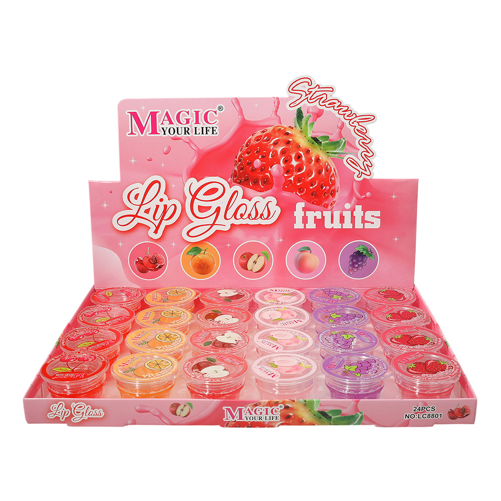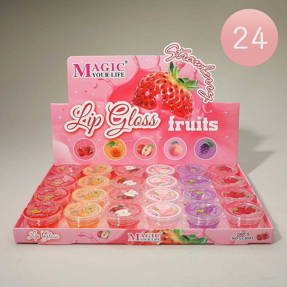 Details • Size : 2" X 1.25" • Add a touch of shine and hydration with this fruity lip gloss collection. Featuring assorted flavors, it delivers a smooth, glossy finish that enhances your lips. Perfect for everyday wear, gifting, or trying fun looks while keeping your lips soft and moisturized.