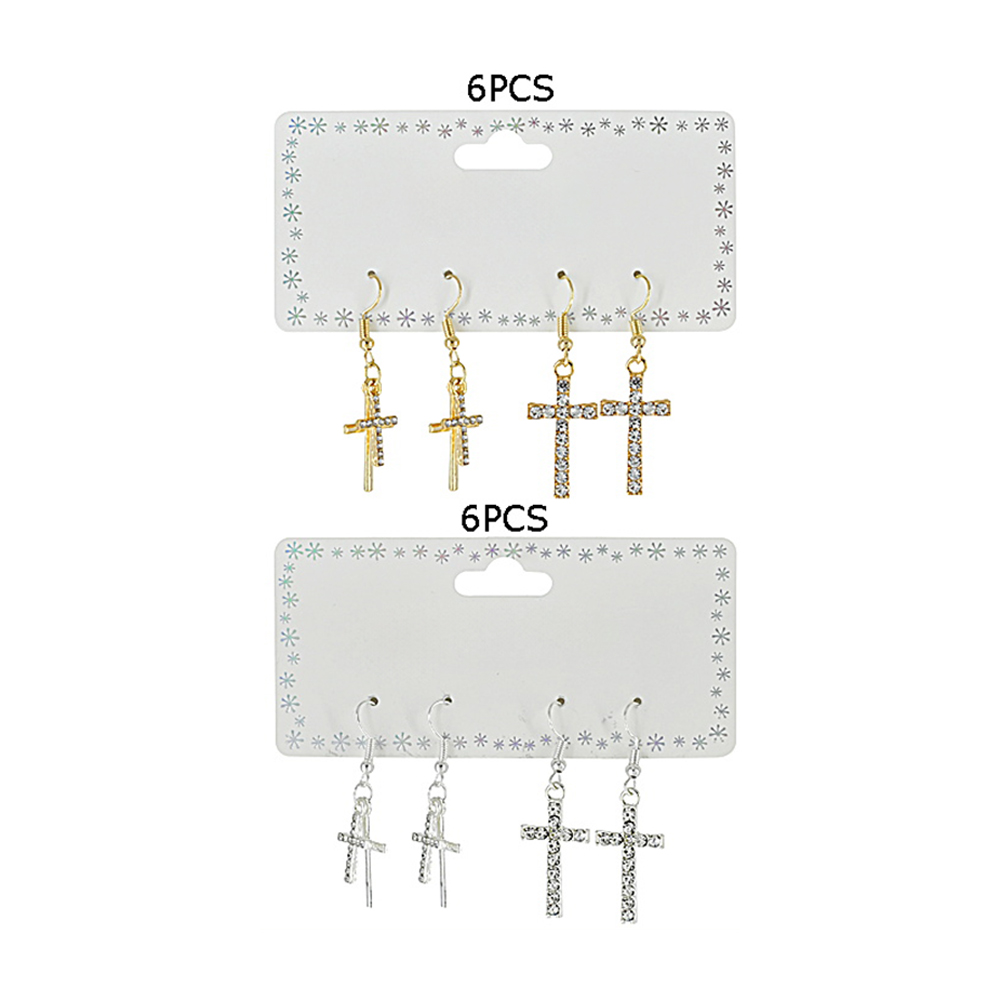 12 SET OF 2 - Stone Paved Cross Dangle Earrings 12 SET OF 2 - Stone Paved Cross Dangle Earrings