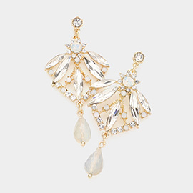 Bold Mixed Shaped Stone Cluster Embellished Open Teardrop Dangle Evening Clip On Earrings