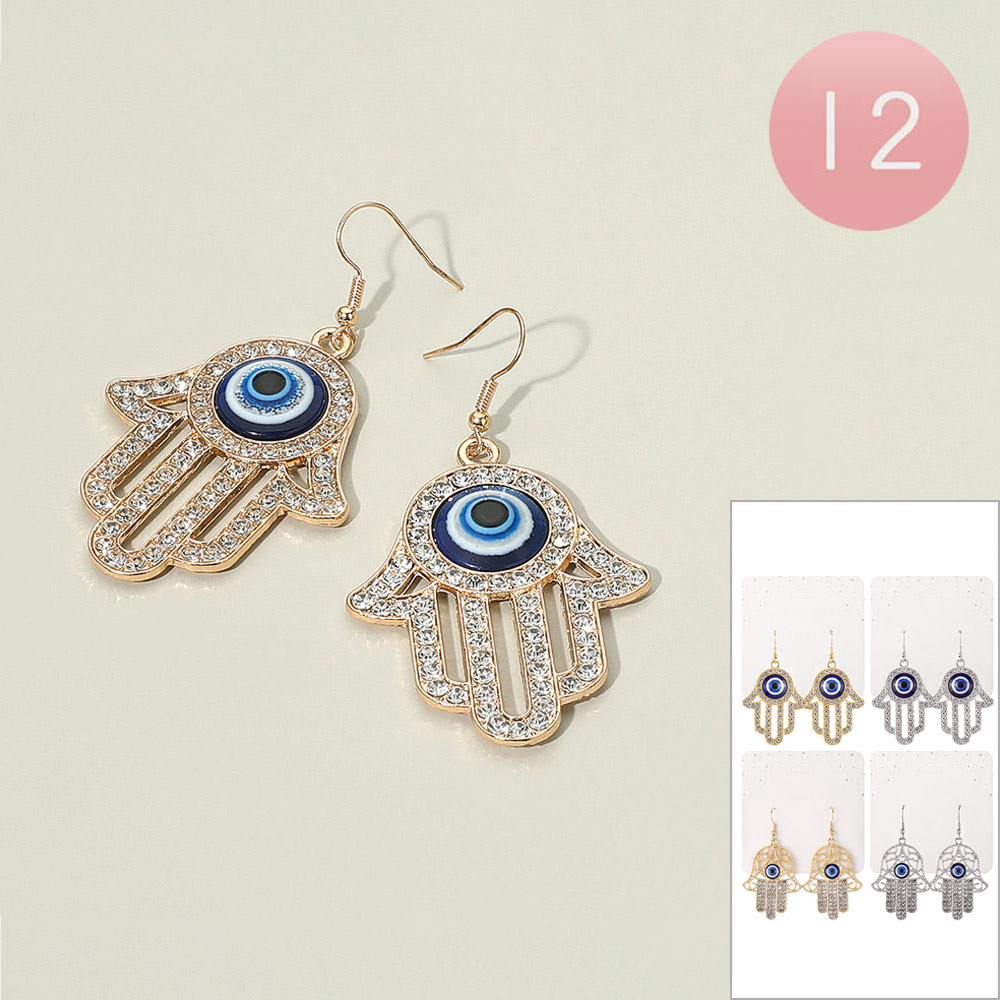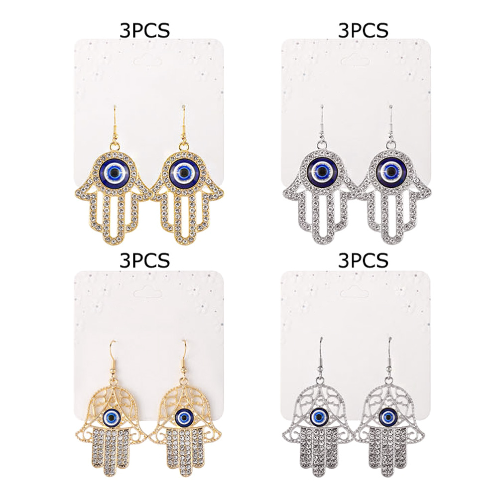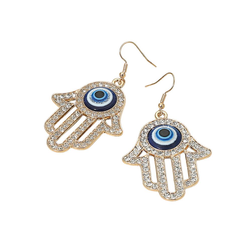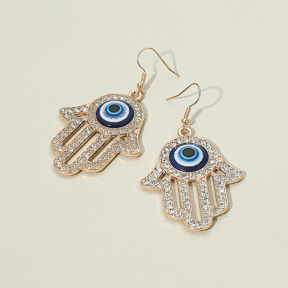 Details • Size : 1.3" X 2.5" • Fish Hook Back • Embrace meaningful fashion with Hamsa hand dangle earrings featuring the protective evil eye design. These sparkling earrings symbolize luck and protection while adding elegance to any outfit. Perfect for spiritual style, daily wear, or gifting with purpose.