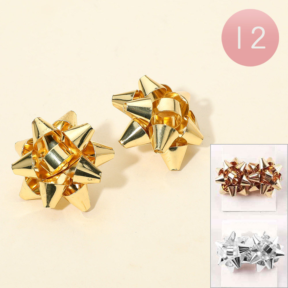 Details • Size : 1.5" X 1.5" • Post Back • Set of 12 gift bow stud earrings designed to add a playful and festive charm to your look. Perfect for holidays, parties, or everyday fun, these earrings bring a unique touch of style and whimsy. Lightweight and versatile, they also make a thoughtful gift for friends and loved ones.