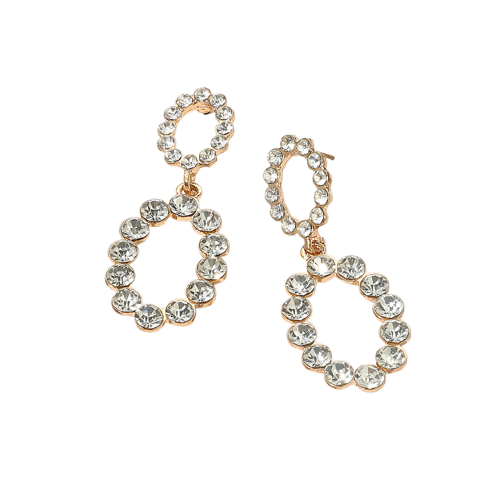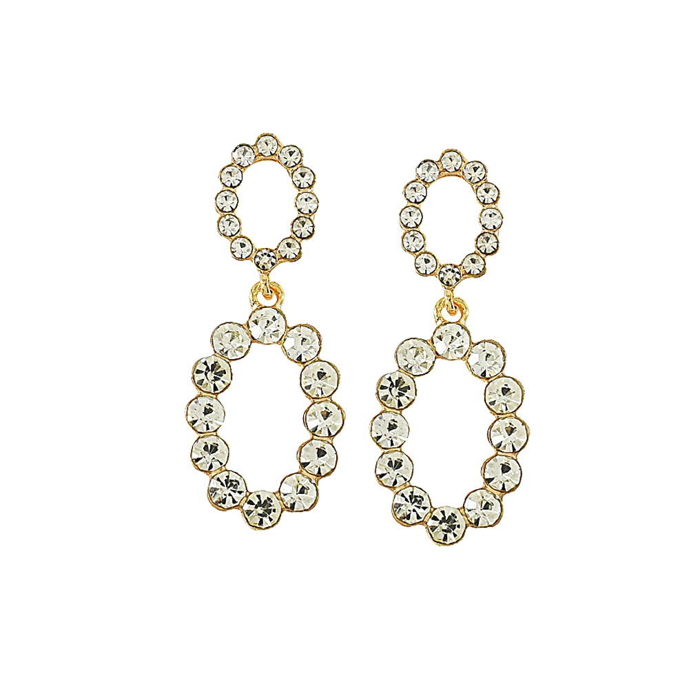 Details • Size : 0.8" X 2.2" • Post Back • Shine bright with these oval rhinestone drop earrings designed for maximum sparkle and sophistication. Ideal for weddings, parties, and evening wear, these earrings add a touch of glamour and elegance to any outfit, making them the perfect statement accessory.