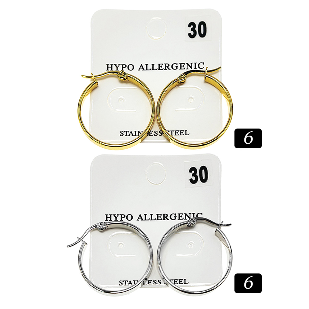 12Pairs - Stainless Steel Pin Catch Hoop Earrings