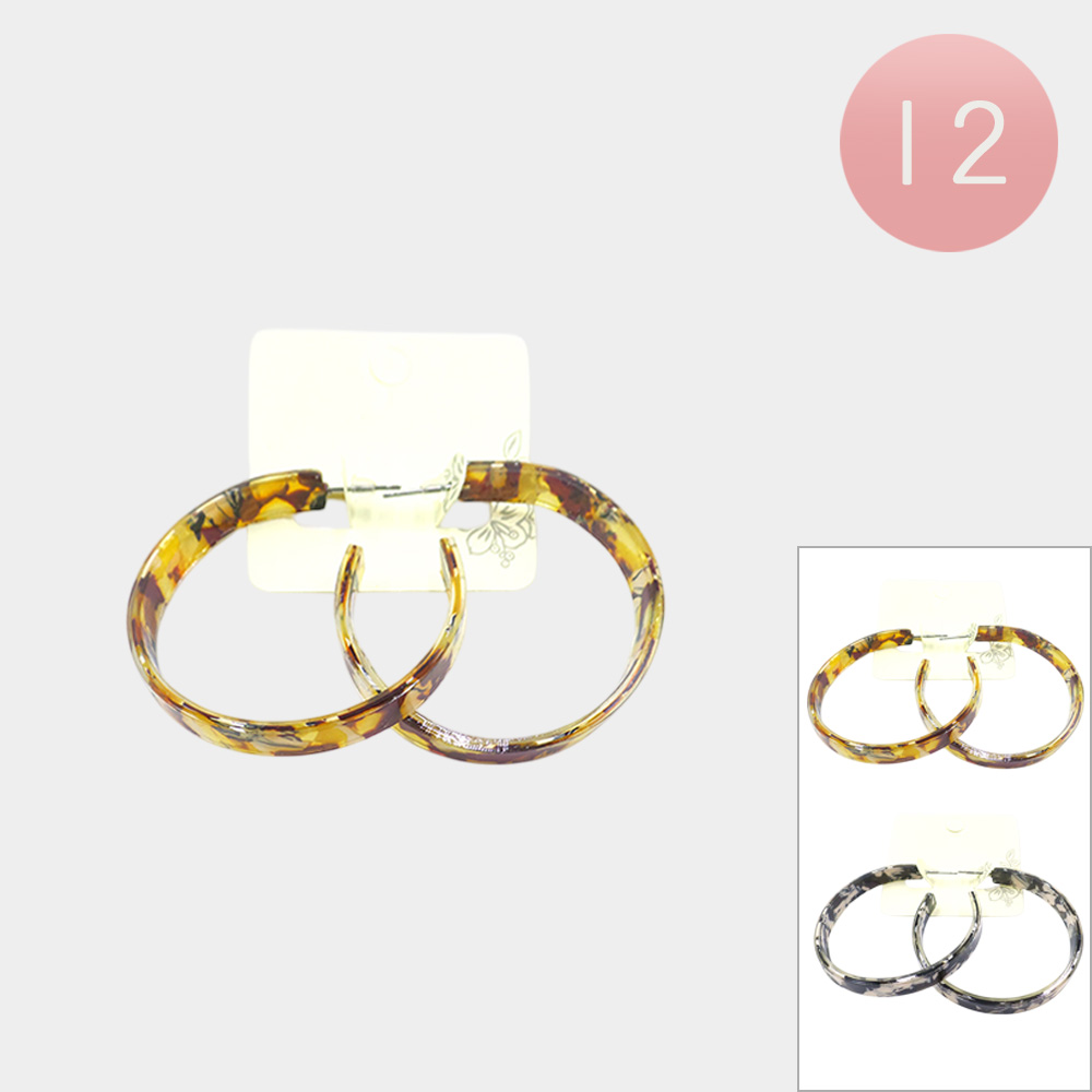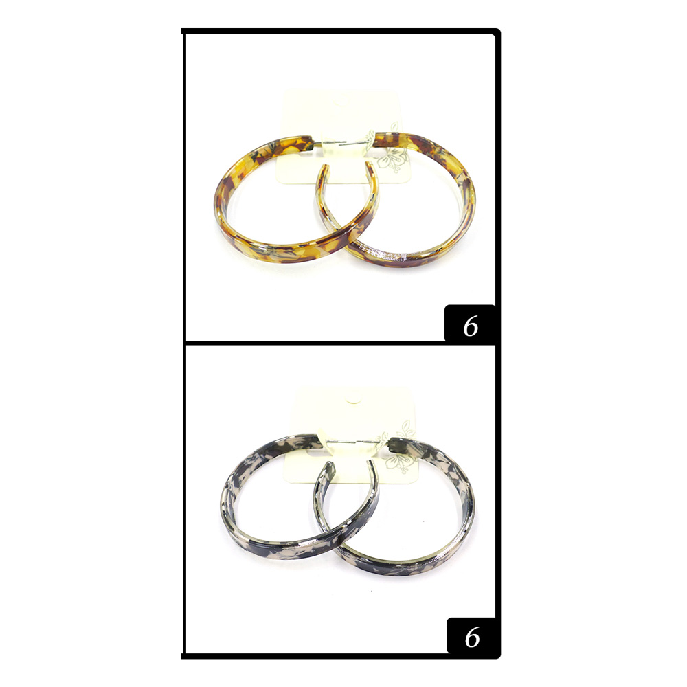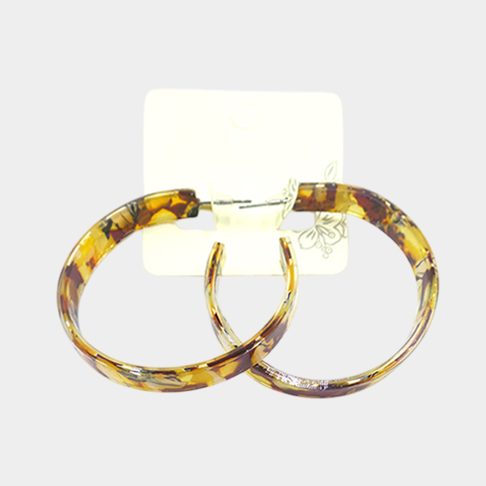 Details • Size : 2" L • Post Back • Add timeless flair with these lightweight abstract pattern resin hoop earrings. Featuring two versatile pairs, they’re perfect for everyday wear or elevating evening looks. A chic accessory choice that blends modern style with classic elegance.