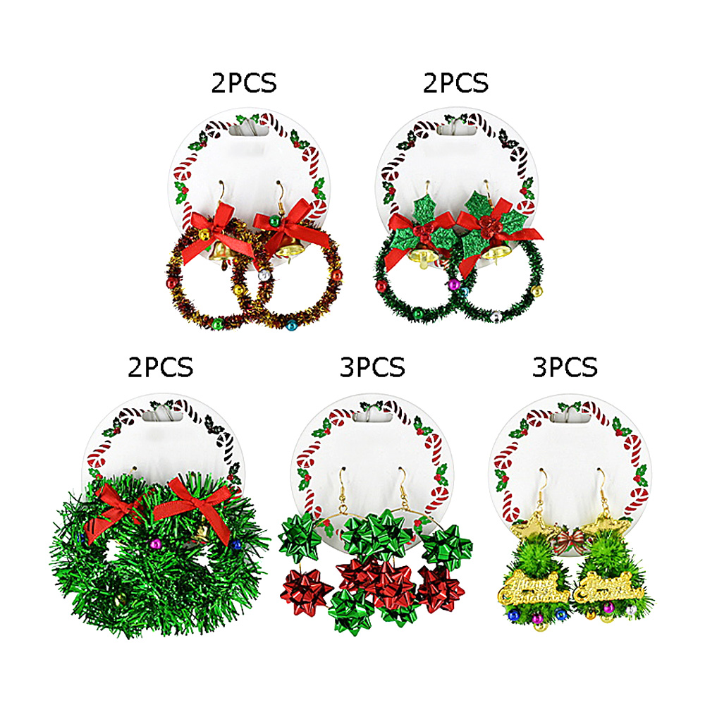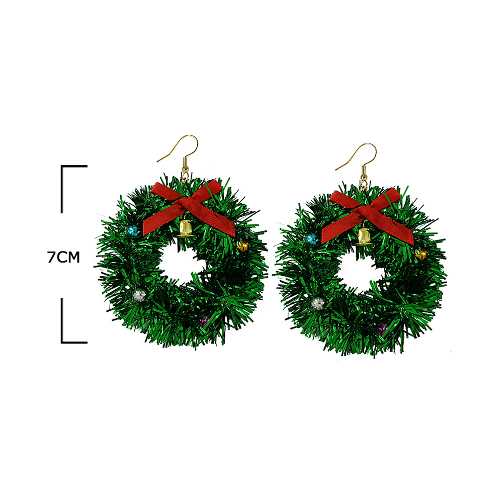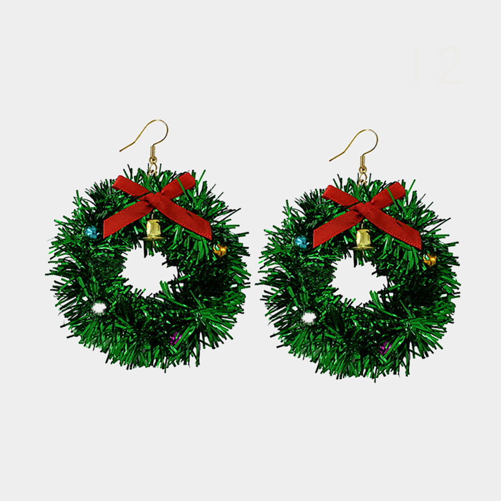 Details • Size : 3.1" X 3.1" • Fish Hook Back • Brighten your holiday look with this Christmas earrings set featuring festive wreaths, glitter bows, and merry accents. Perfect for parties, stocking stuffers, and gifting, these statement earrings bring playful cheer and seasonal sparkle to every outfit. • Lead and Nickel Compliant
