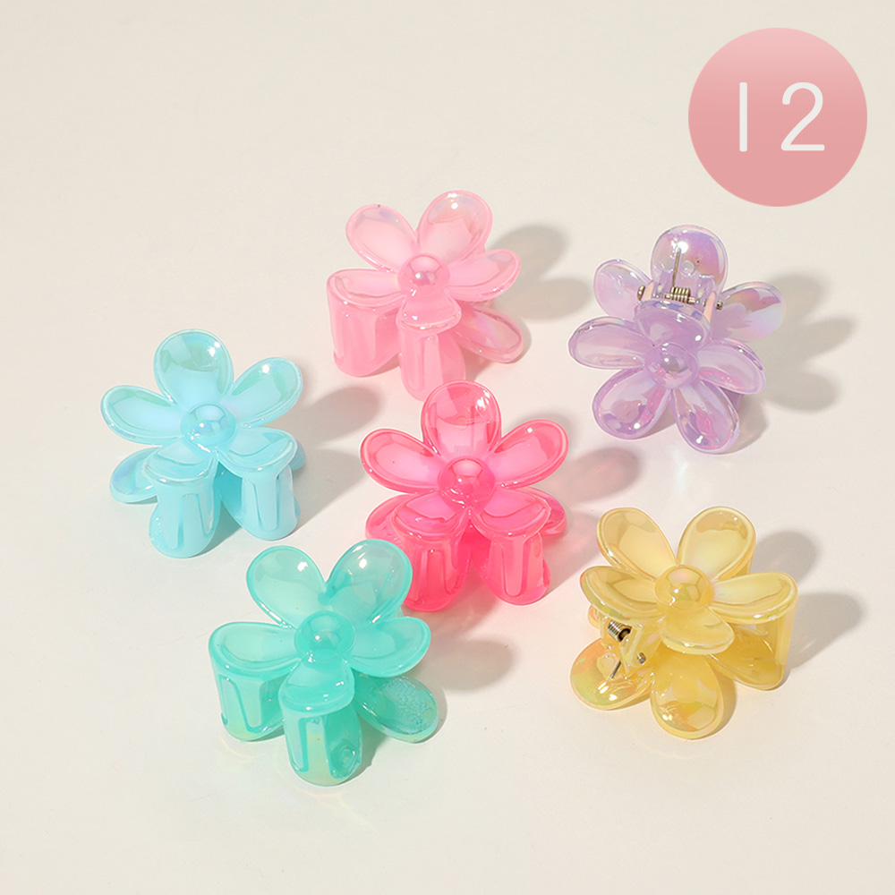 12 SET OF 3 - Flower Shaped Hair Claw Clip Set