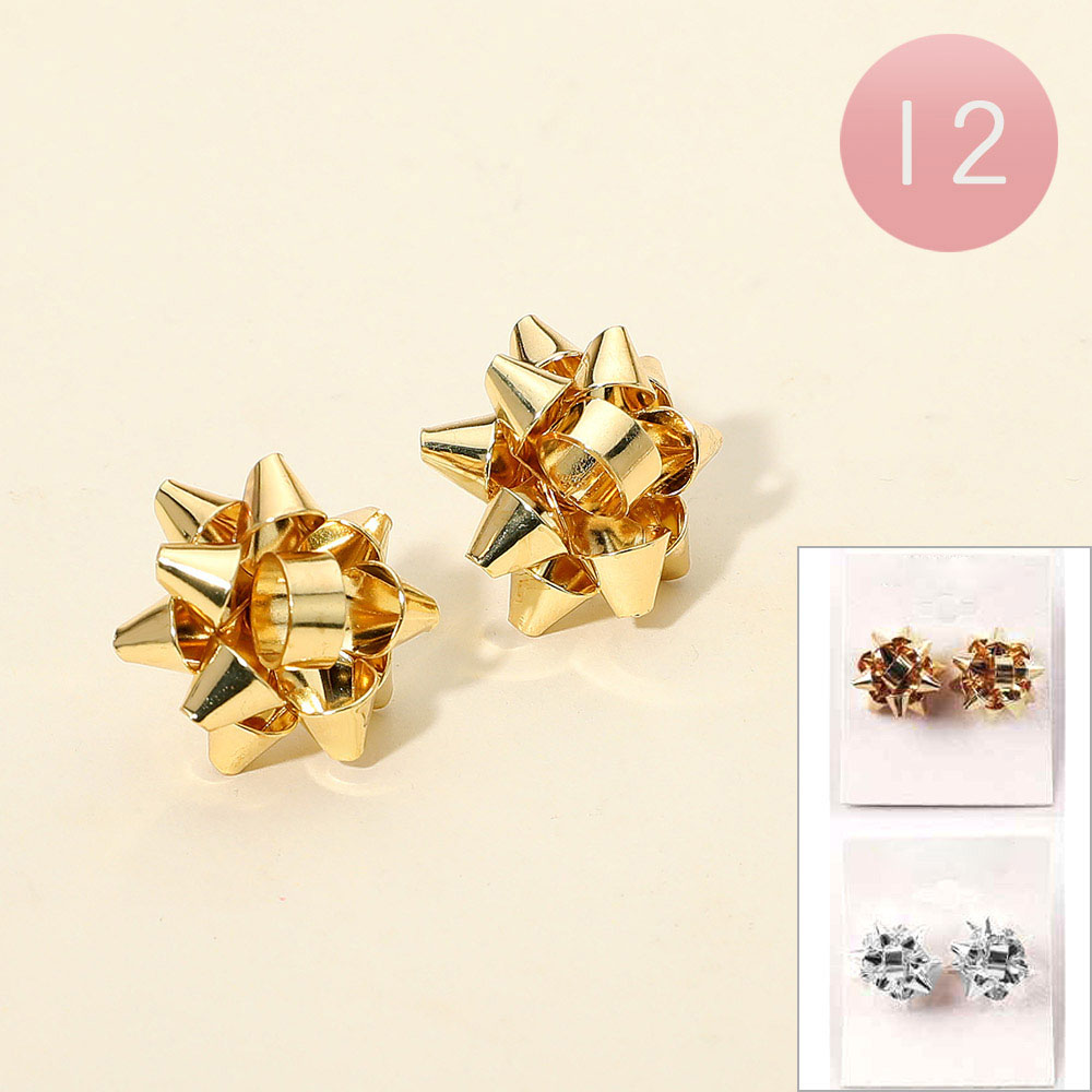 Details • Size : 0.8" X 0.8" • Post Back • Fun and festive set of 12 gift bow stud earrings designed to bring playful charm to any outfit. Perfect for holiday celebrations, parties, or everyday wear, these earrings add a touch of whimsy and style. Lightweight and versatile, they also make a delightful gift for friends and family.