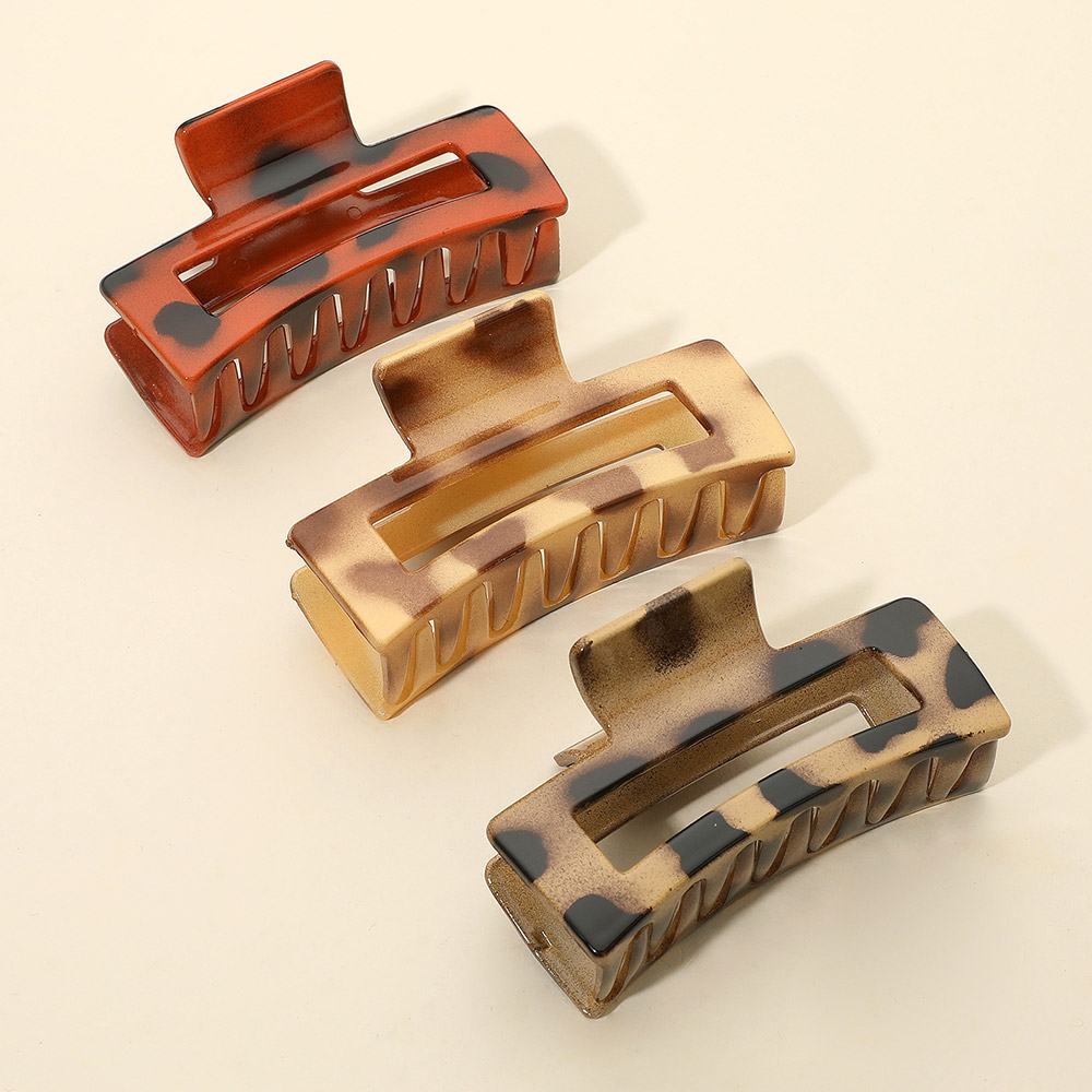 • Trendy leopard pattern hair claw clips designed with a strong grip and open rectangle cutout. This 3-piece set combines function with bold style, making them perfect for everyday wear or adding flair to special looks.
