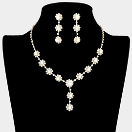 3PCS - Floral Accent Pearl Metal Ball Beaded Stretch Multi Layered Bracelets
