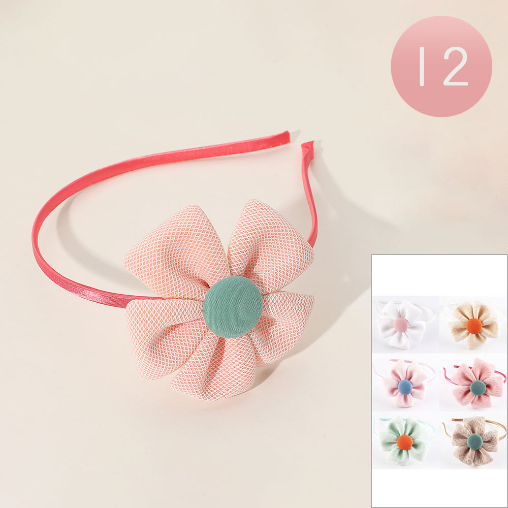 • Add charm to any outfit with these adorable floral headbands! Featuring soft fabric petals and colorful center accents, this 12-pack is perfect for girls’ everyday wear or parties.
