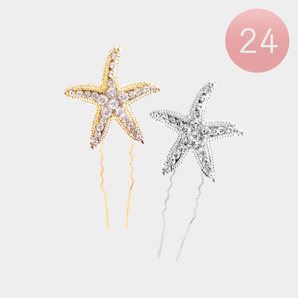 24PCS - Stone Embellished Starfish Hair Comb Pins